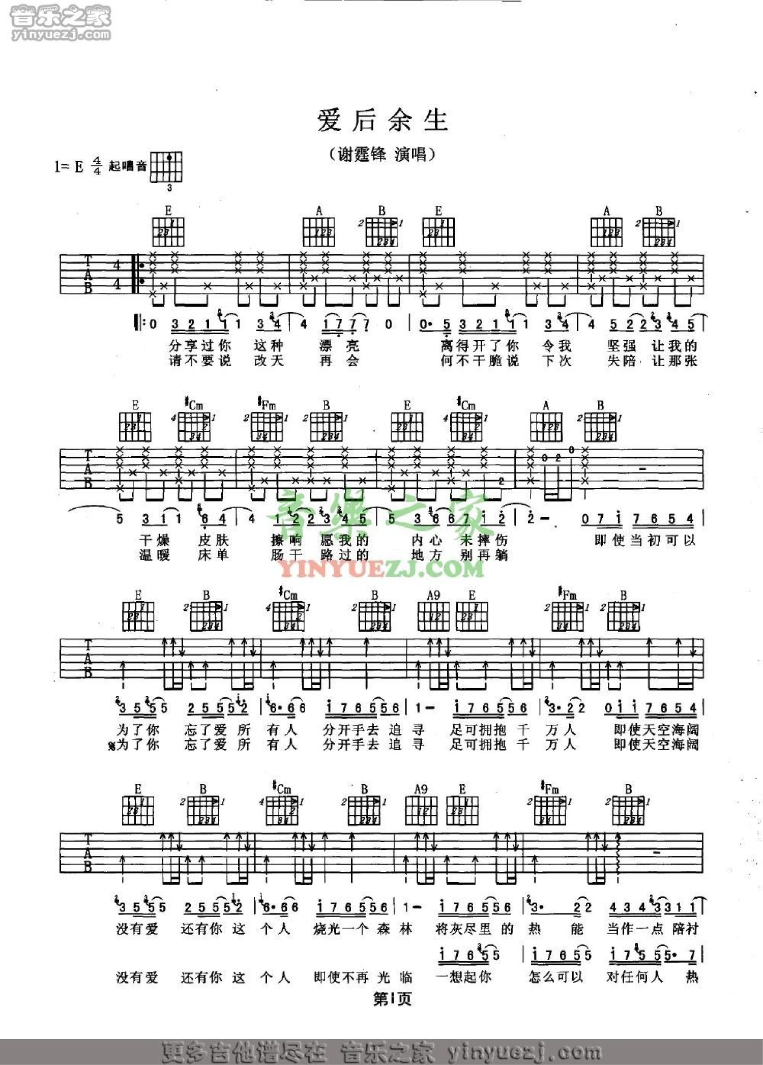 曲谱介绍: 谢霆锋《爱后余生》吉他谱_C调吉他弹唱谱