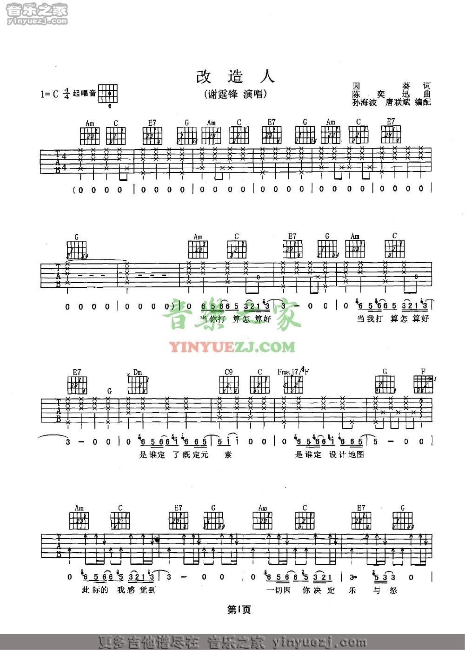 曲谱介绍: 谢霆锋《改造人》吉他谱_C调吉他弹唱谱