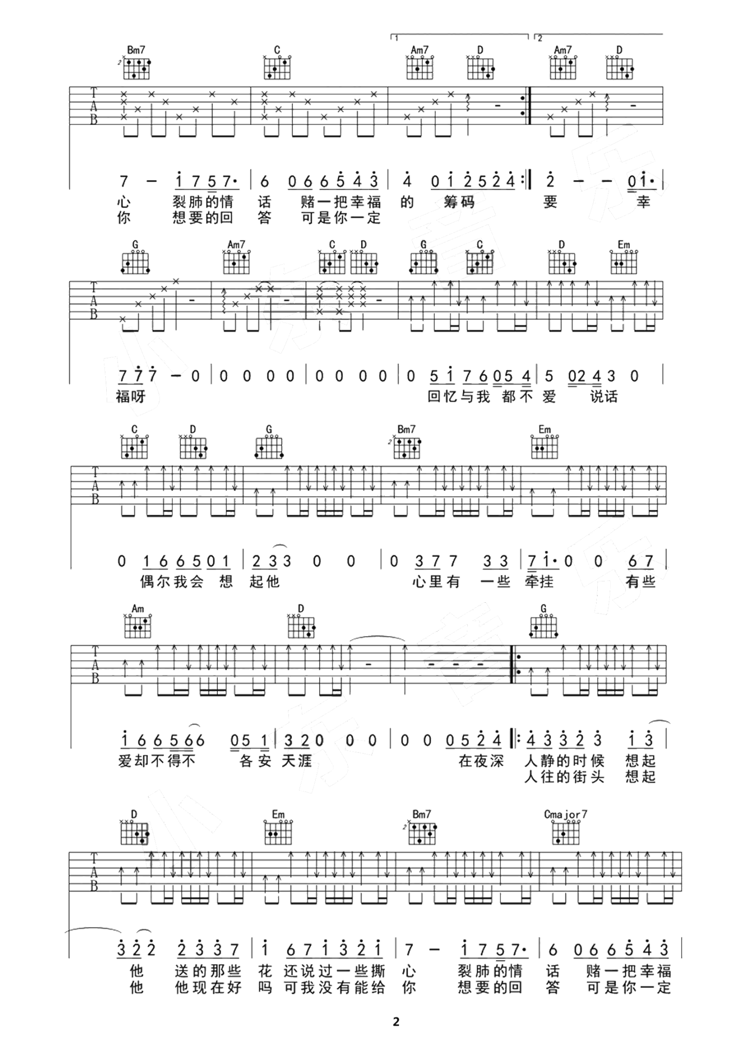 曲谱介绍: 虎二演唱版本,抖音经典翻唱,何洁原唱的一首动听情歌单曲循环的沦陷,有些爱不得不各安天涯,祝每一位听到的朋友们都一生幸福!