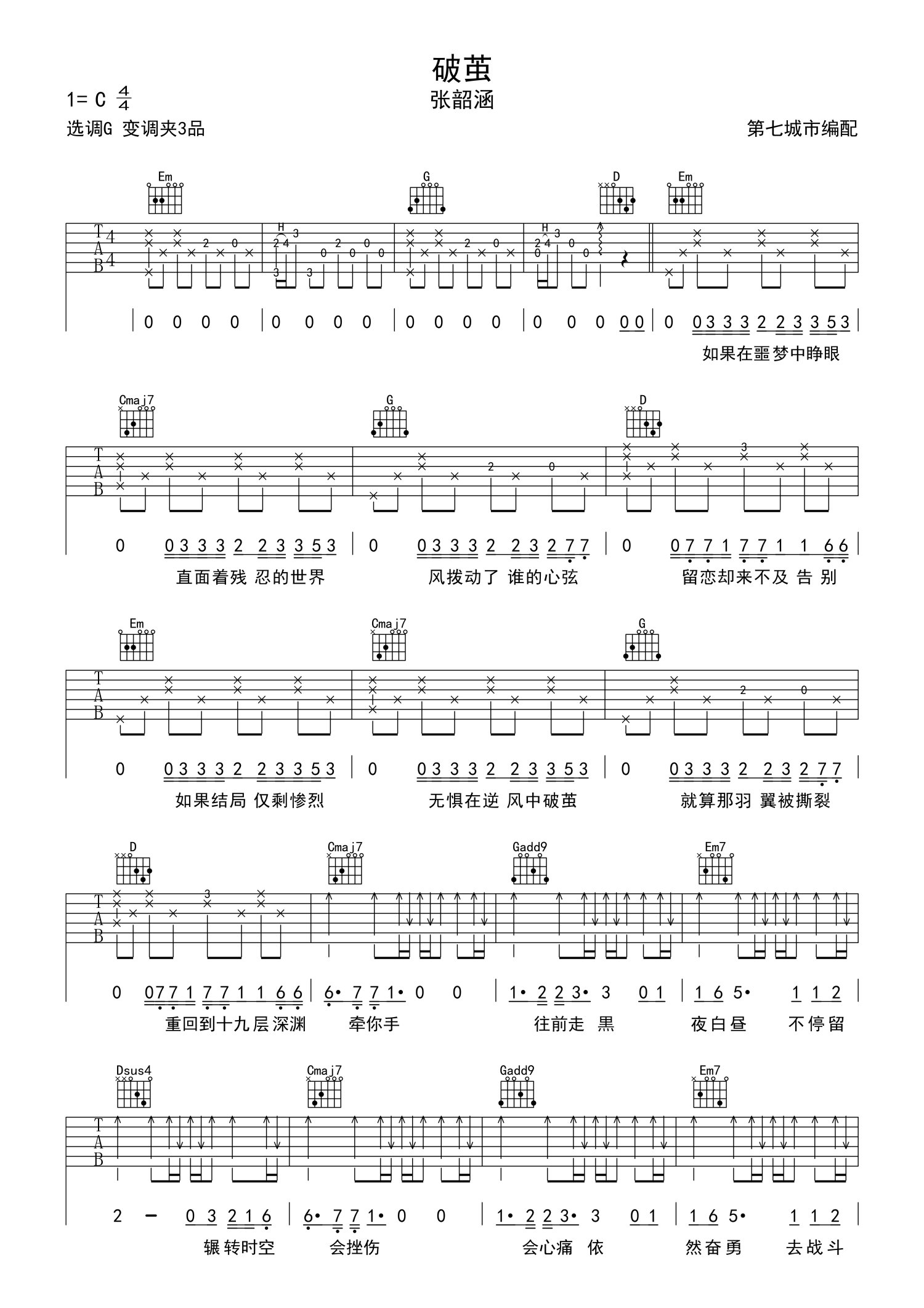 • 破茧吉他谱 - 张韶涵 - 吉他弹唱谱第1张