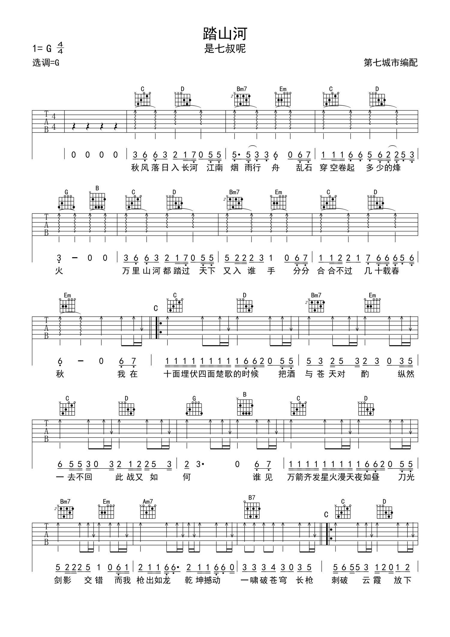 • 踏山河吉他谱 - 是七叔呢 - 吉他弹唱谱第1张