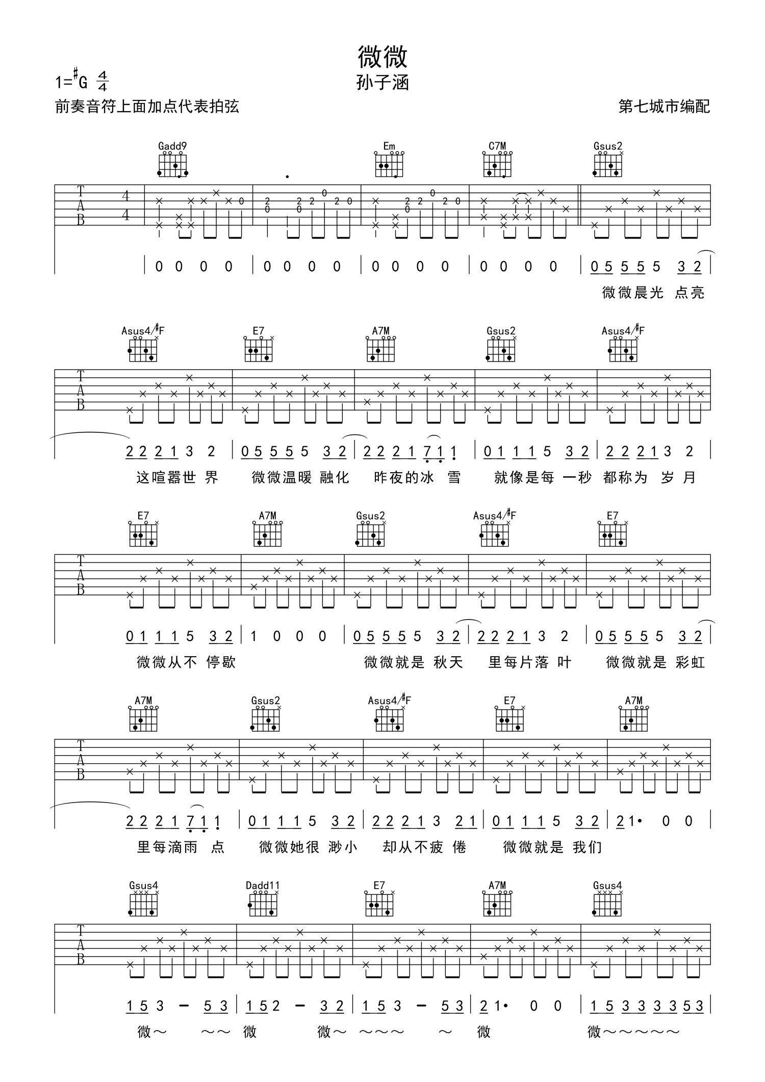 • 微微吉他谱 - 孙子涵 - G调吉他弹唱谱第1张