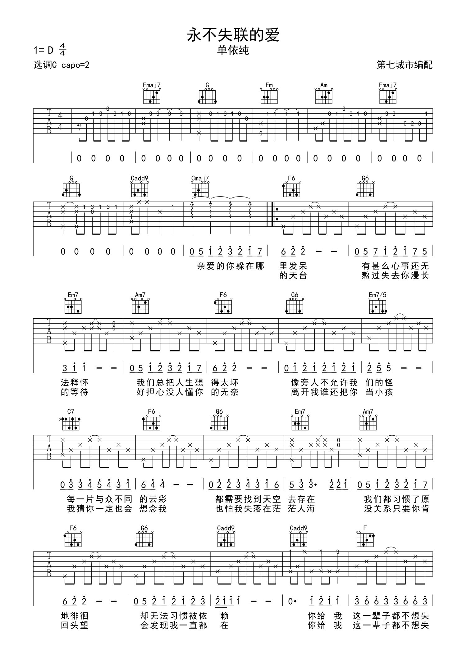 • 永不失联的爱吉他谱 - 单依纯 - C调吉他弹唱谱第1张
