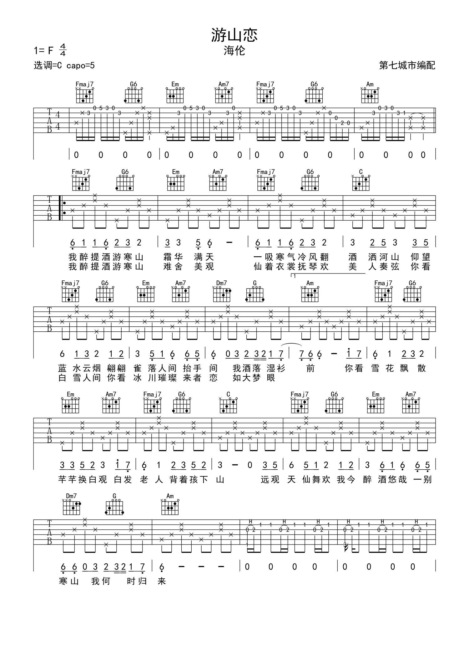 • 游山恋吉他谱 - 海伦 - C调吉他弹唱谱第1张