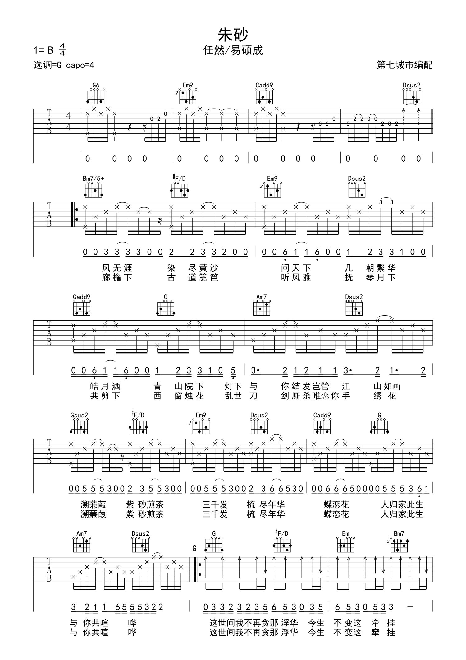 • 朱砂吉他谱 - 任然 - G调吉他弹唱谱第1张