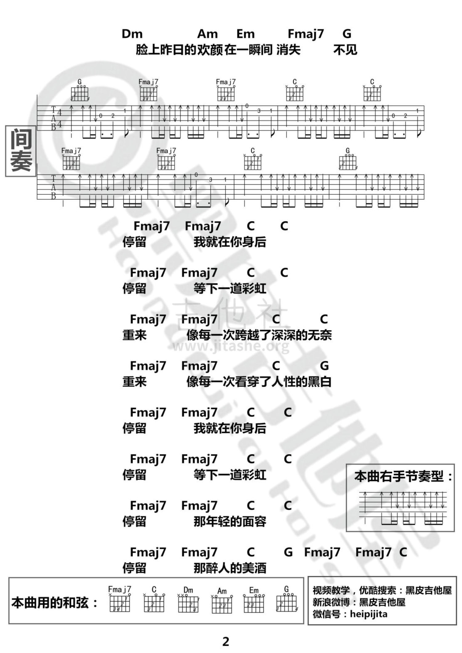 吉他弹唱C调来源:黑皮吉他屋11186 浏览2021-01-12 10:21发布图谱共2页