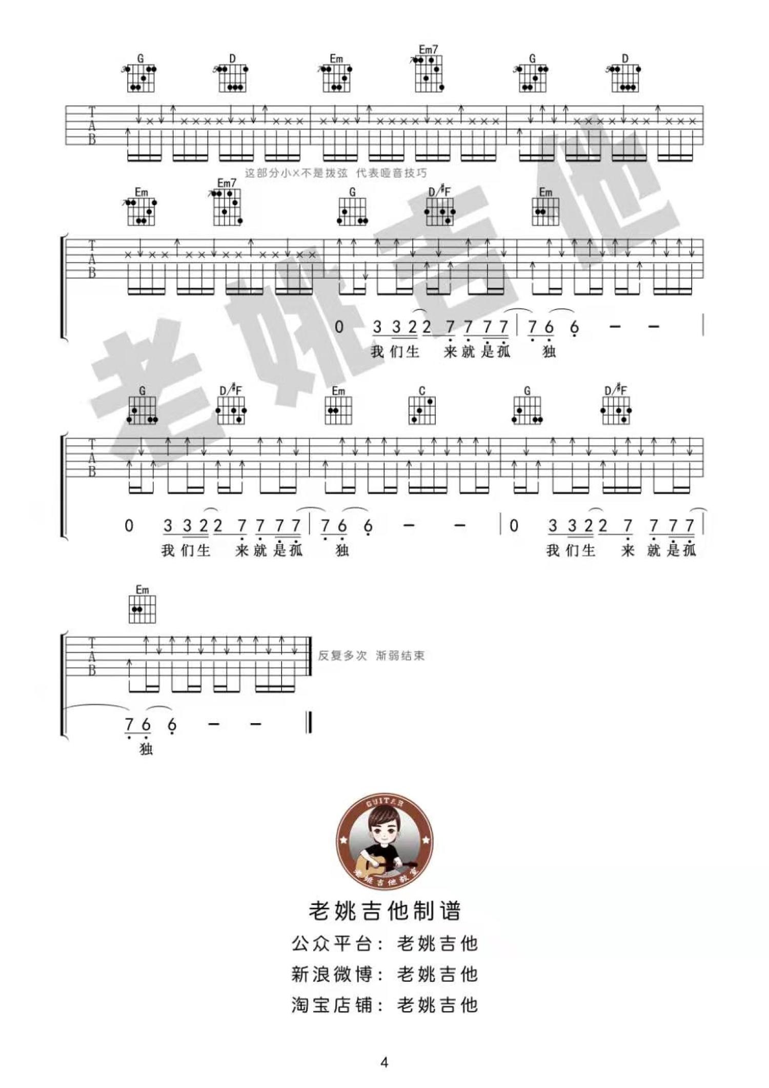吉他弹唱G调来源:老姚吉他1681 浏览2021-01-12 14:12发布图谱共4页