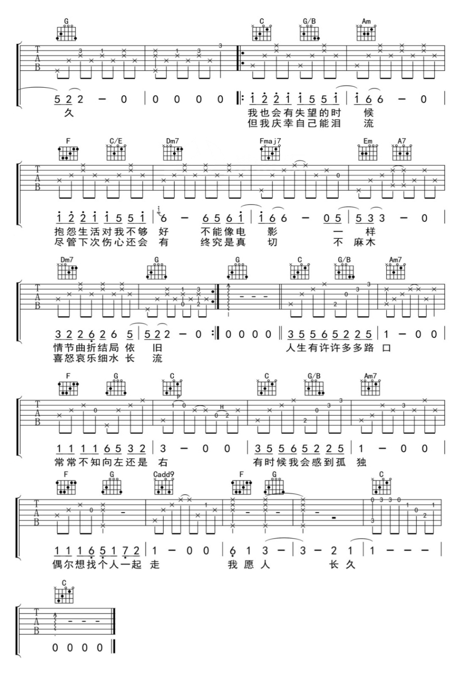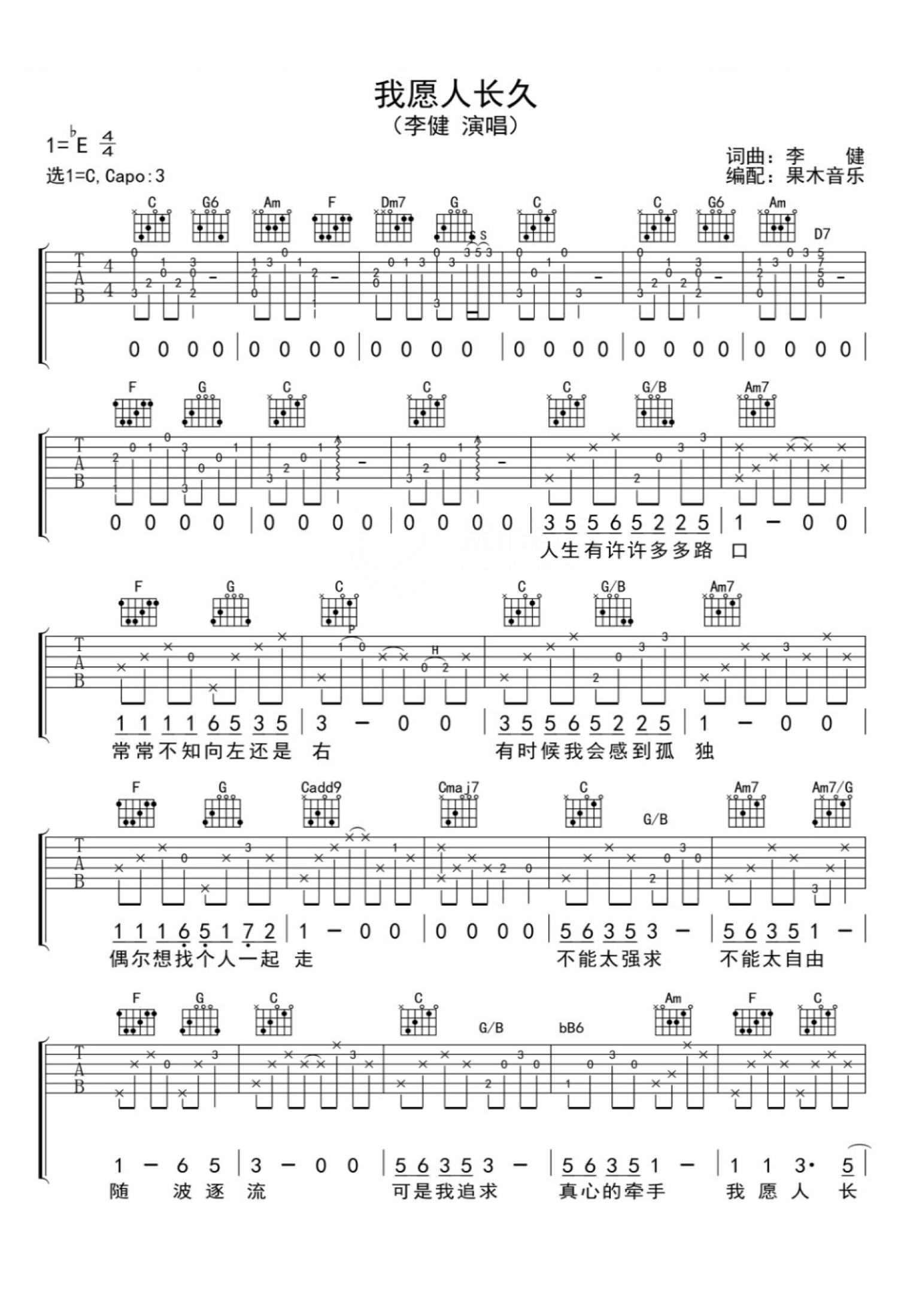 我愿人长久吉他谱 - 李健 - C调吉他弹唱谱