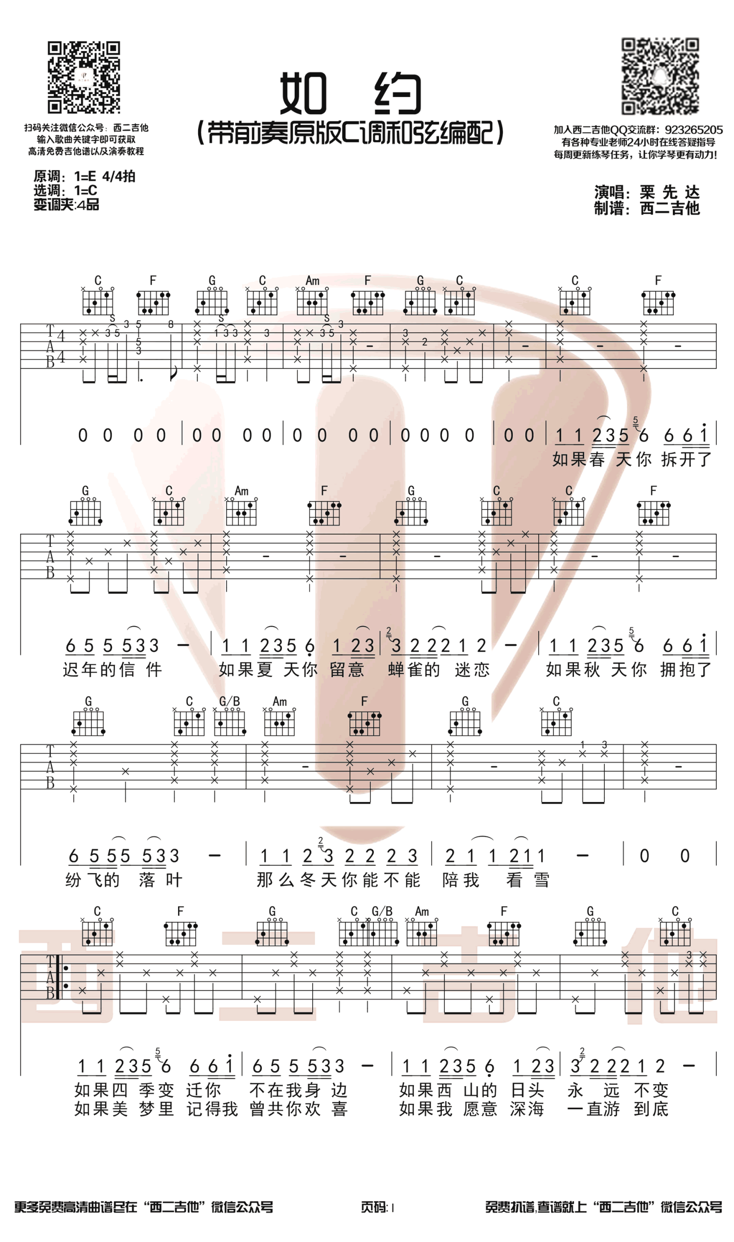 如约吉他谱 - 栗先达 - C调吉他弹唱谱