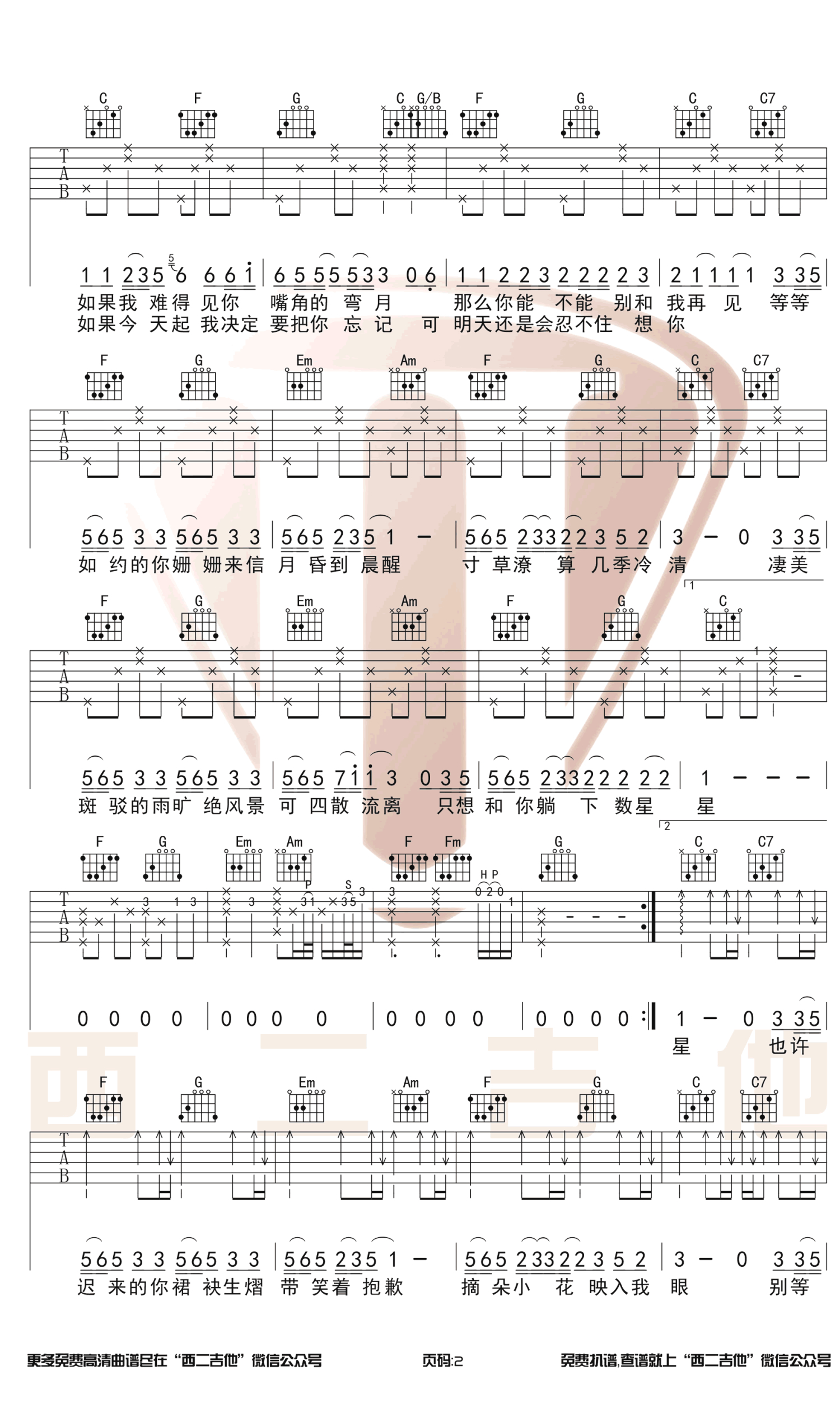 吉他弹唱C调来源:西二吉他706 浏览2018-12-14 14:29发布图谱共2页