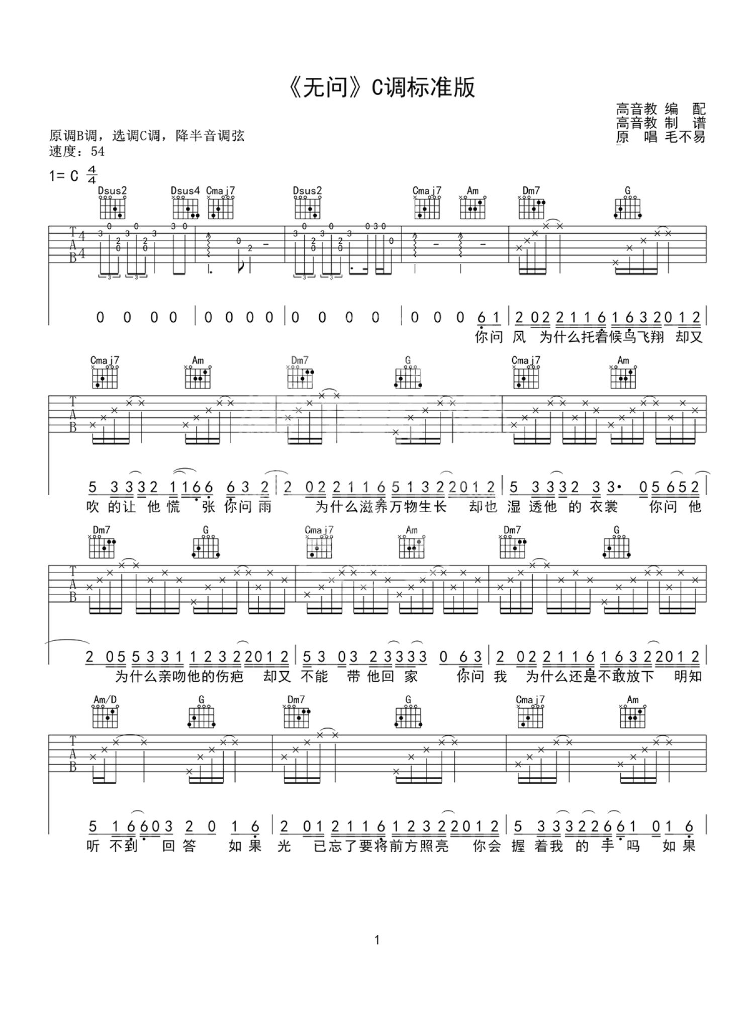吉他弹唱C调来源:高音教1030 浏览2018-12-14 14:29发布图谱共3页