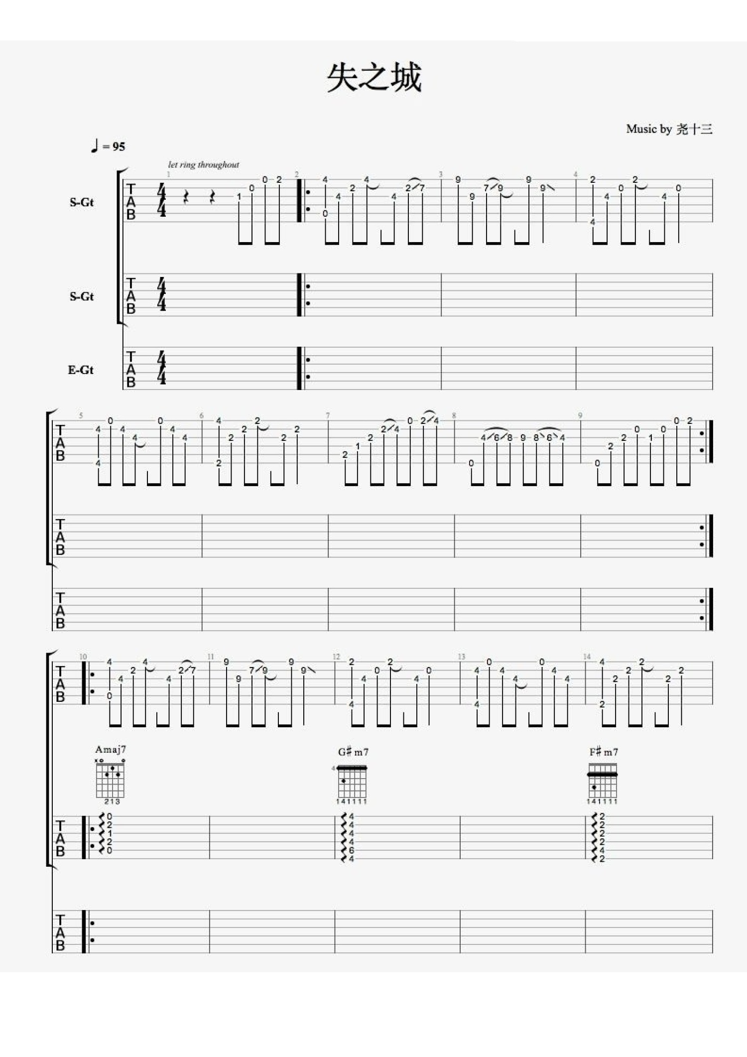 失之城吉他谱 - 尧十三 - 吉他独奏谱