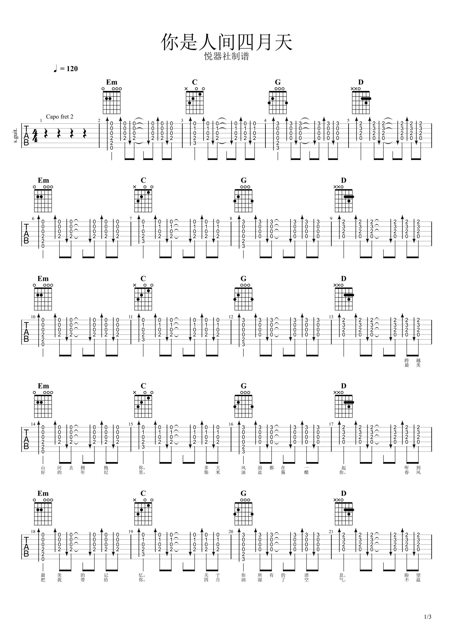 吉他弹唱原调来源:悦器社1020 浏览2021-01-15 22:00发布图谱共3页