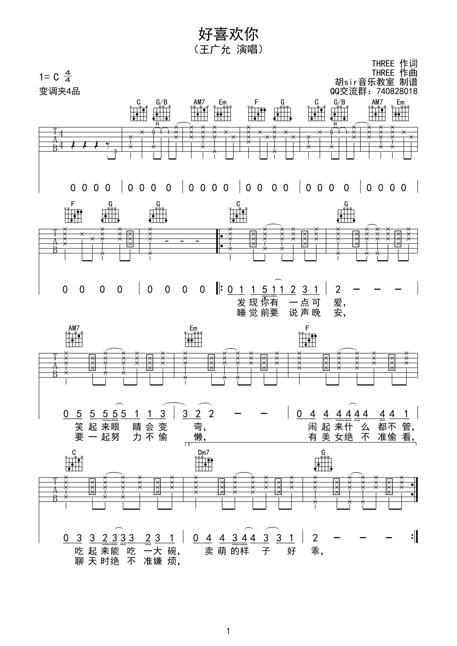 • 好喜欢你吉他谱 - 王广允 - C调吉他弹唱谱第1张