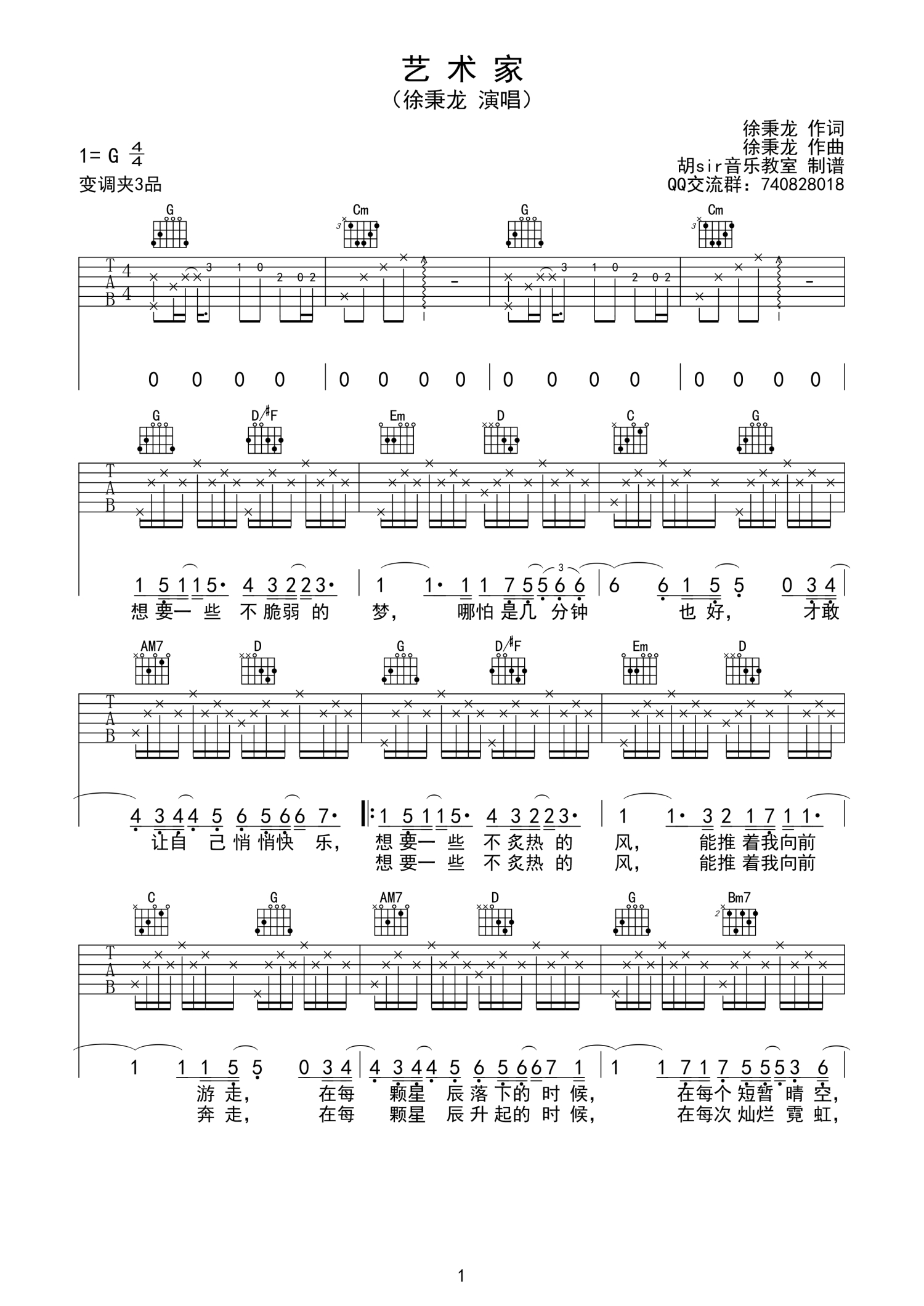 • 艺术家吉他谱 - 徐秉龙 - G调吉他弹唱谱第1张