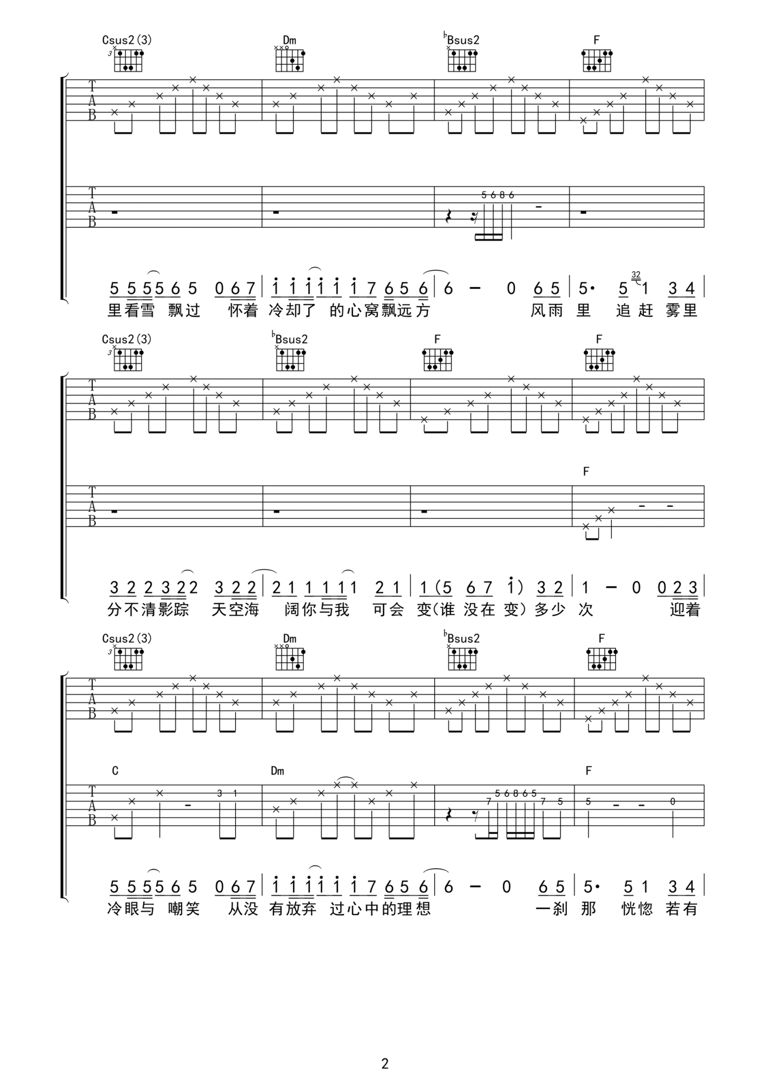 吉他弹唱F调来源:弦心距25582 浏览2021-01-28 10:53发布图谱共8页
