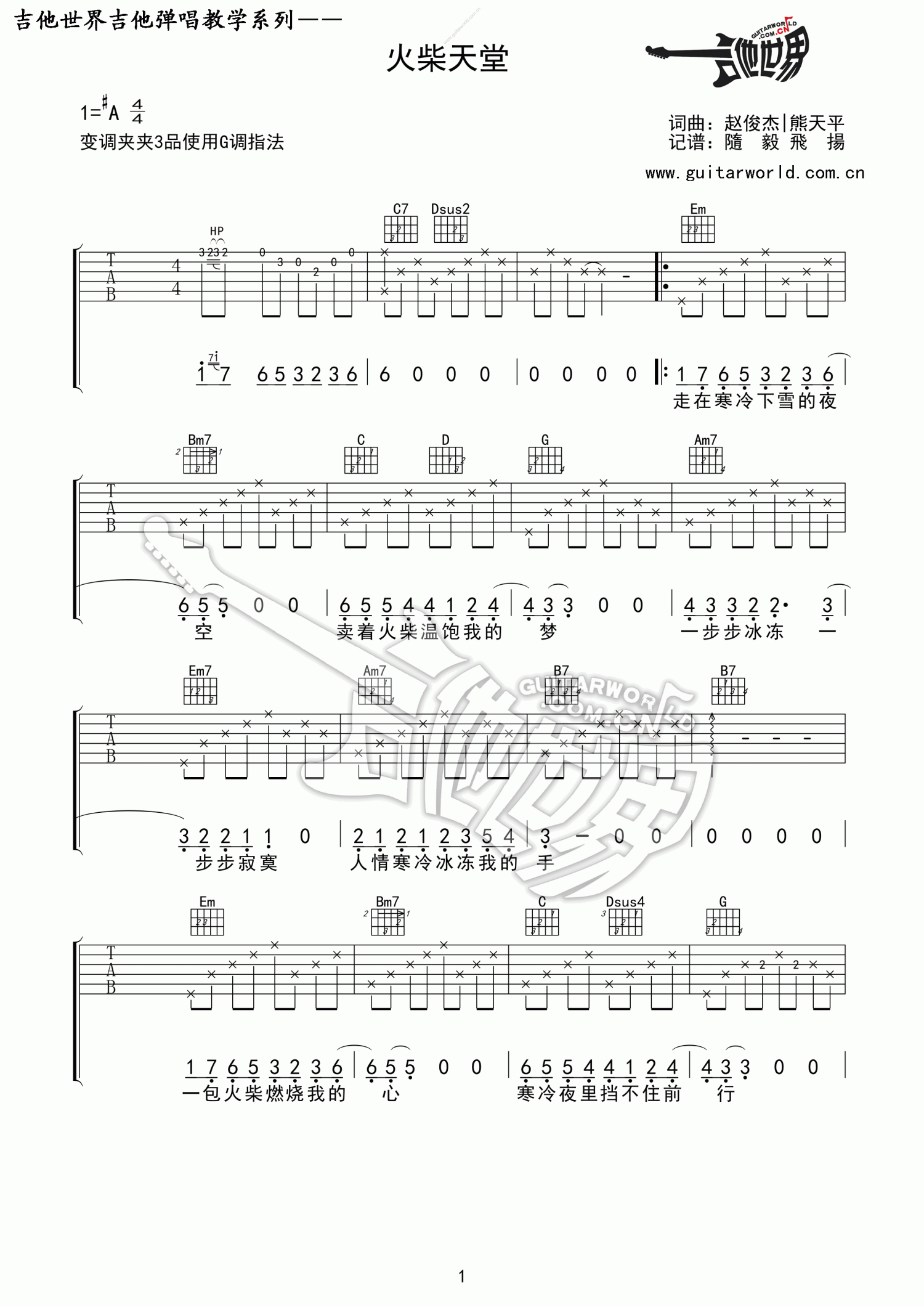 曲谱介绍: 齐秦 火柴天堂G调吉他谱