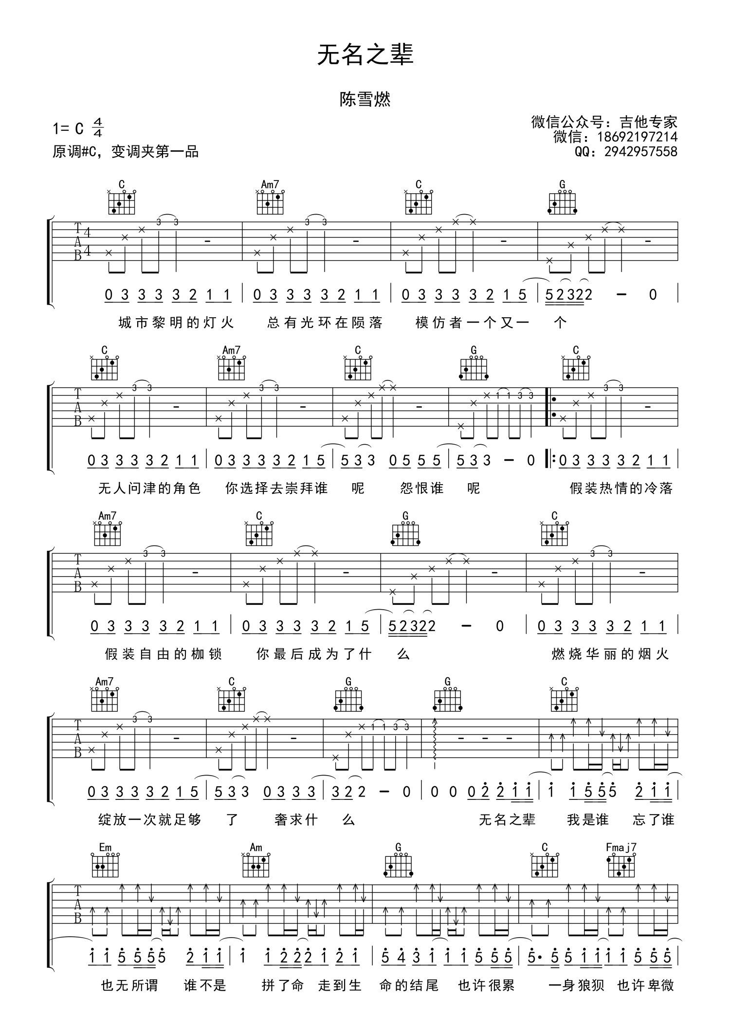 • 无名之辈吉他谱 - 陈雪燃 - C调吉他弹唱谱第1张