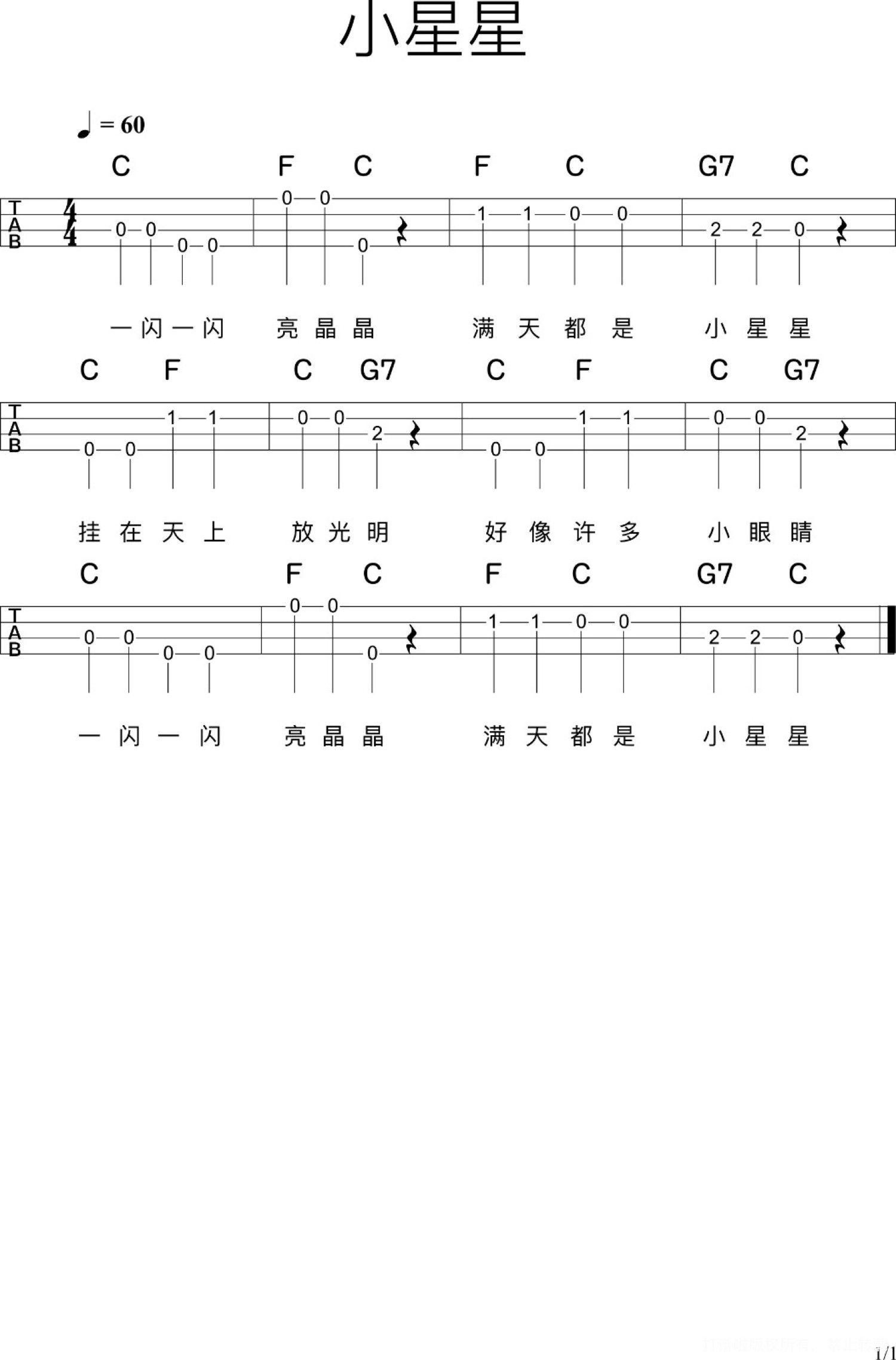 曲谱介绍: 儿歌《小星星》_C调尤克里里谱_单音版