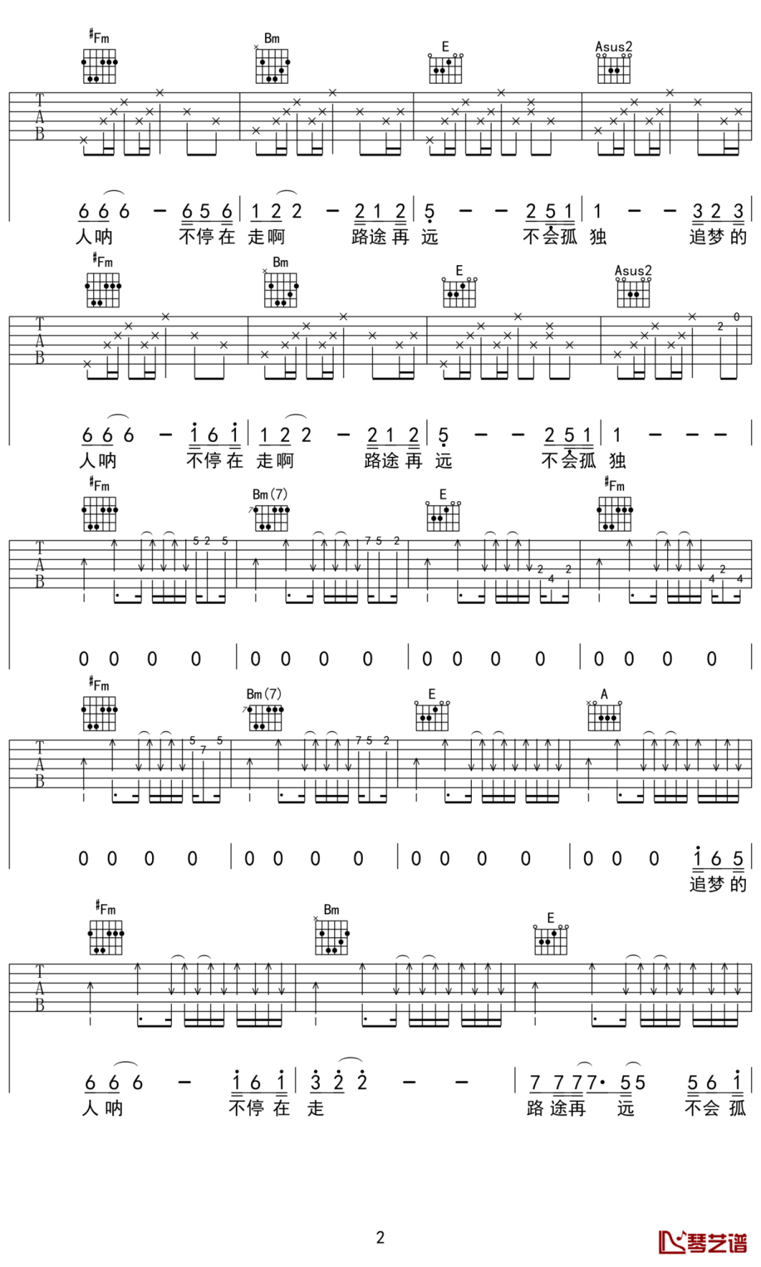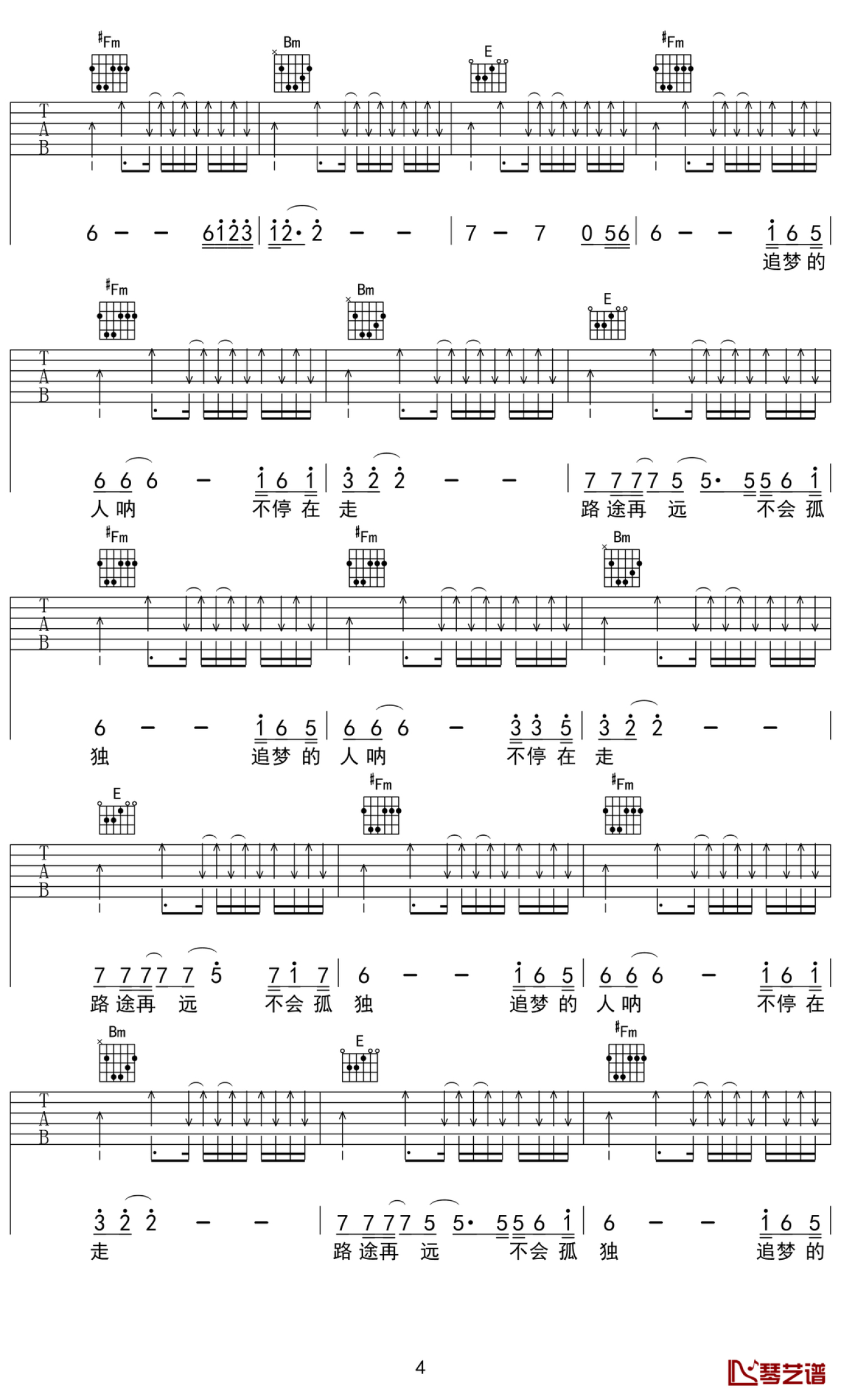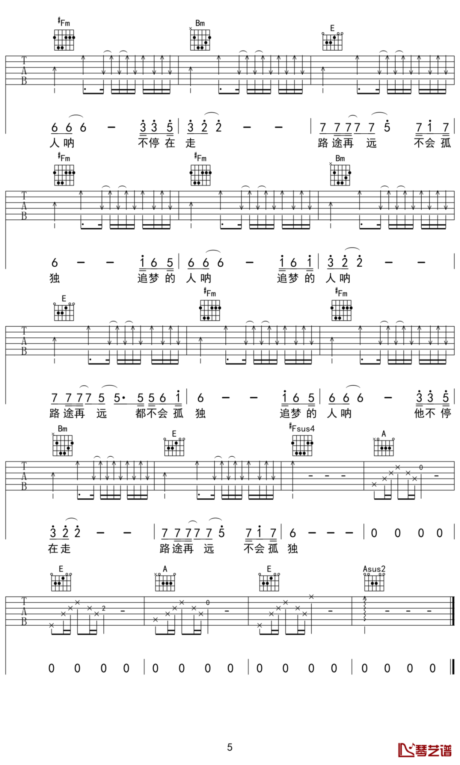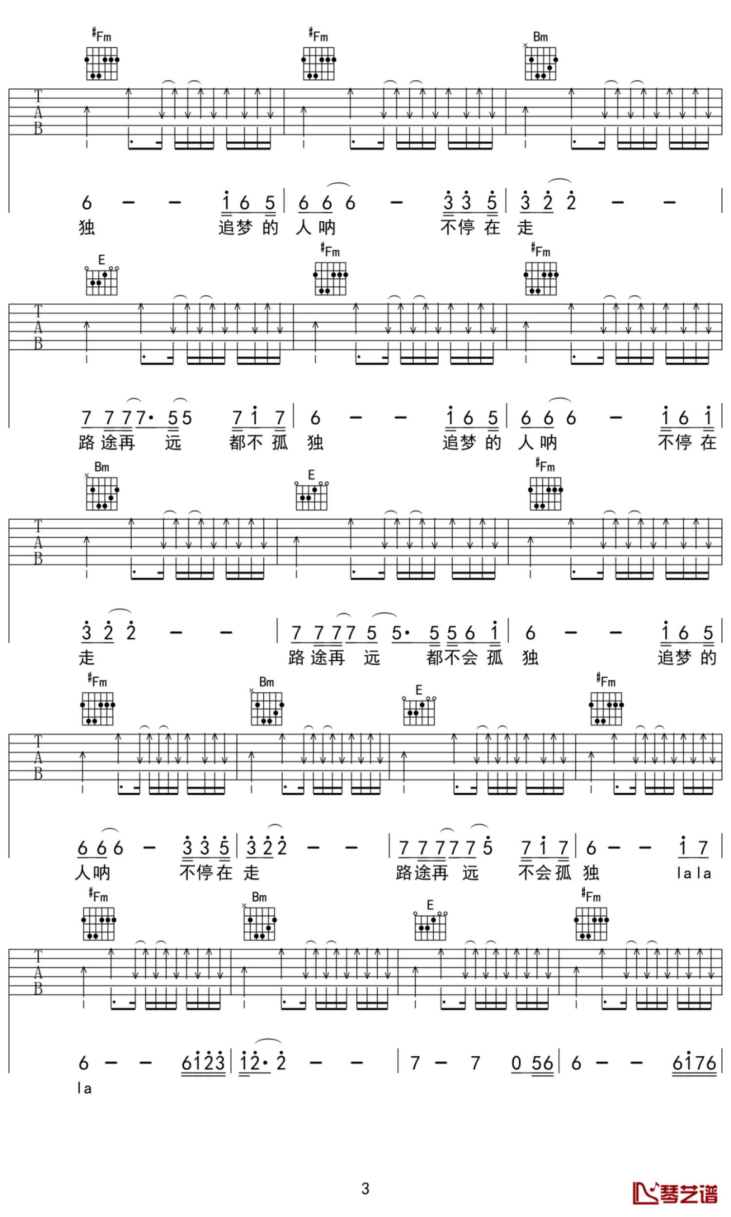 当前位置:琴谱网>吉他弹唱>追梦的路不会孤独