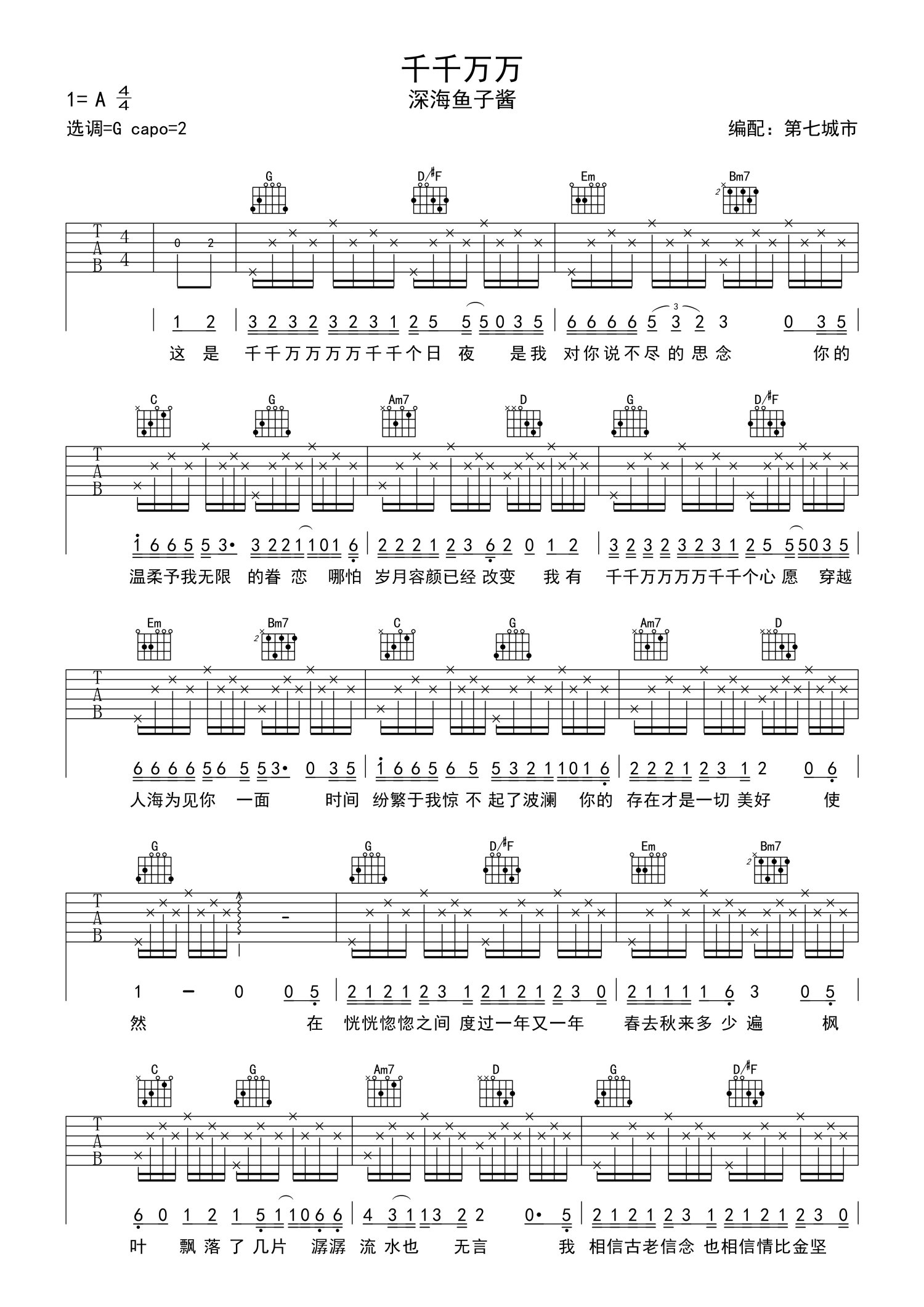 • 千千万万吉他谱 - 深海鱼子酱 - G调吉他弹唱谱第1张