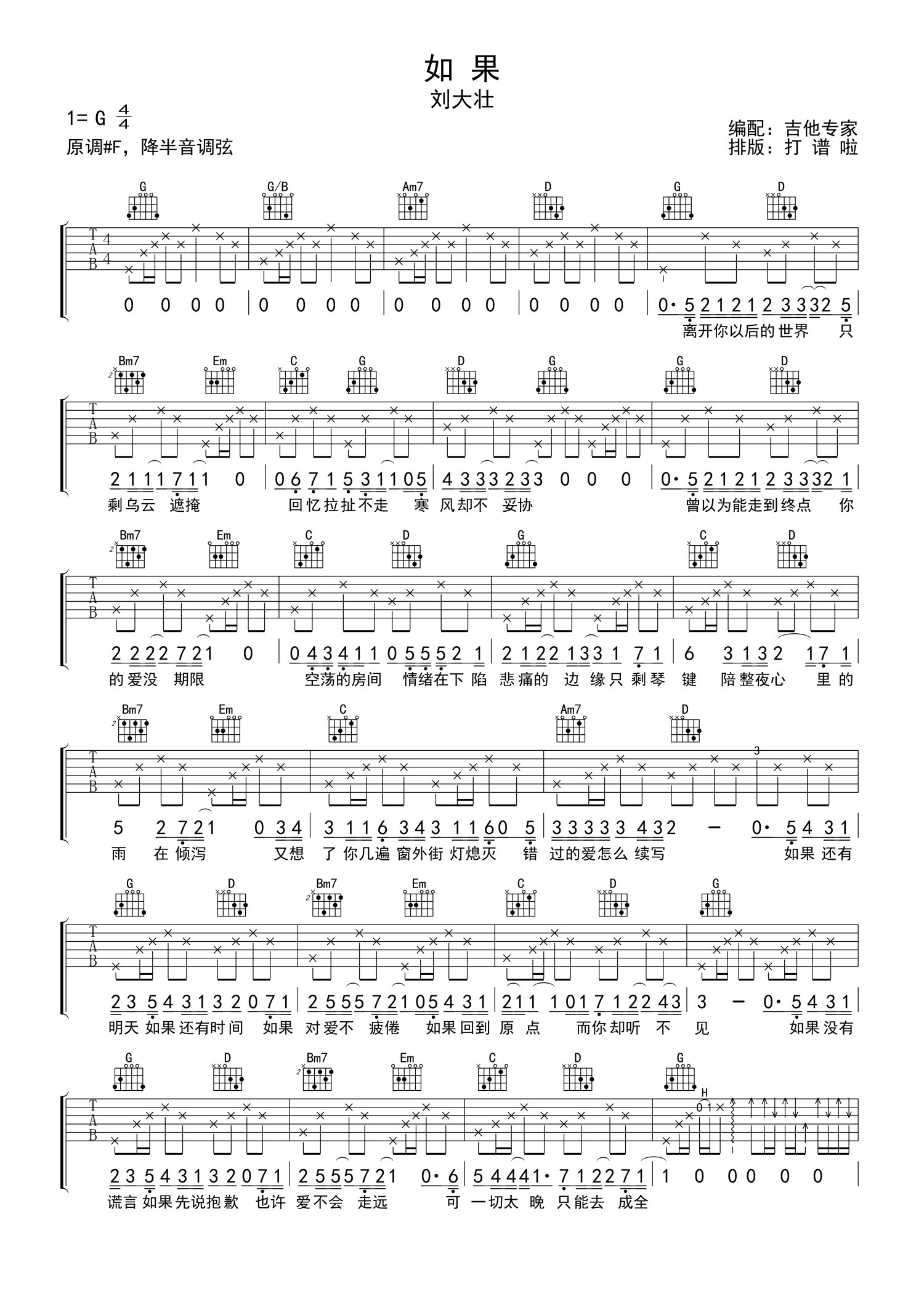 曲谱介绍: 刘大壮《如果》吉他谱_G调吉他弹唱谱