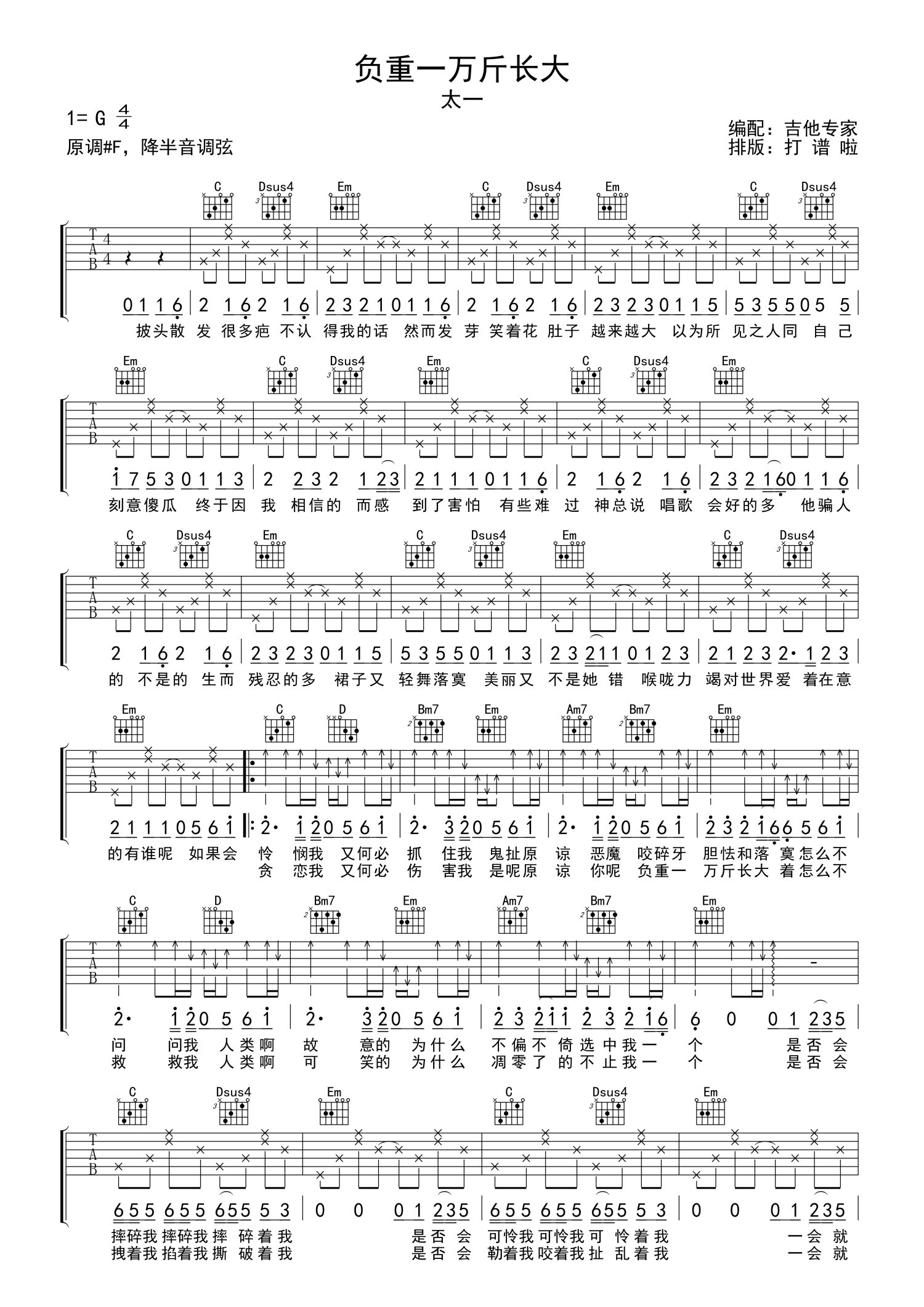 • 负重一万斤长大吉他谱 - 太一 - G调吉他弹唱谱第1张