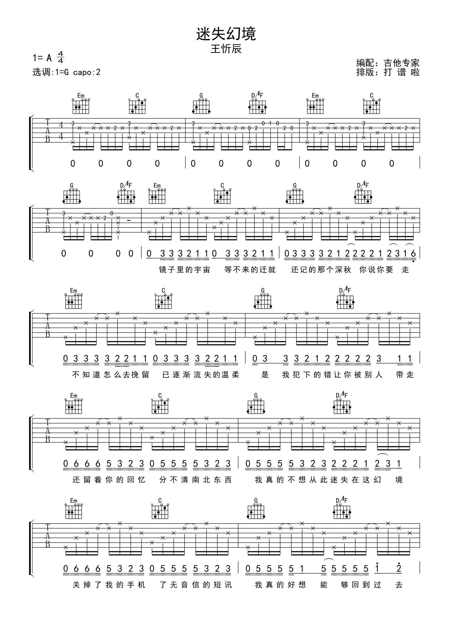 • 迷失幻境吉他谱 - IN-K/王忻辰 - G调吉他弹唱谱第1张