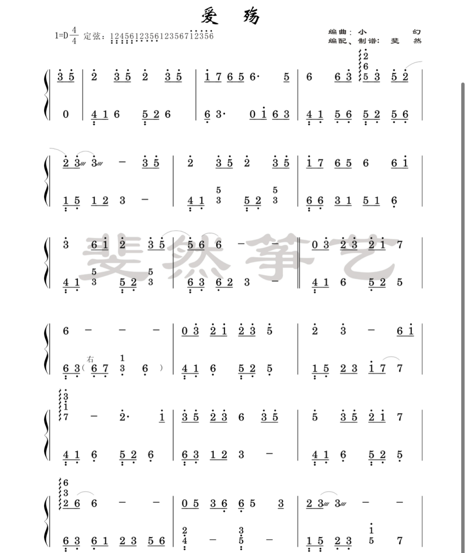 爱殇 - 古筝古筝谱