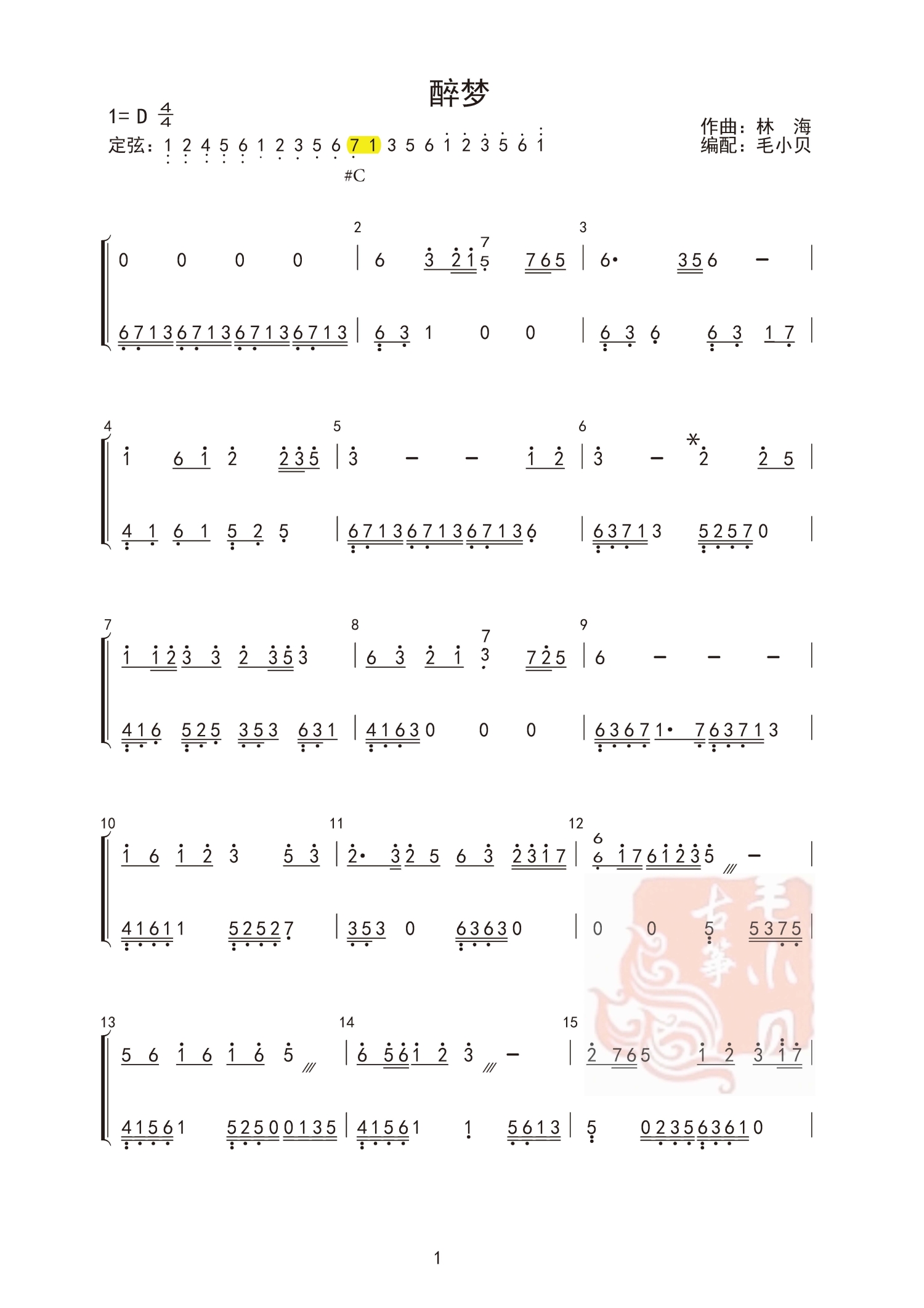 曲谱介绍: 古筝谱《醉梦》_古筝谱