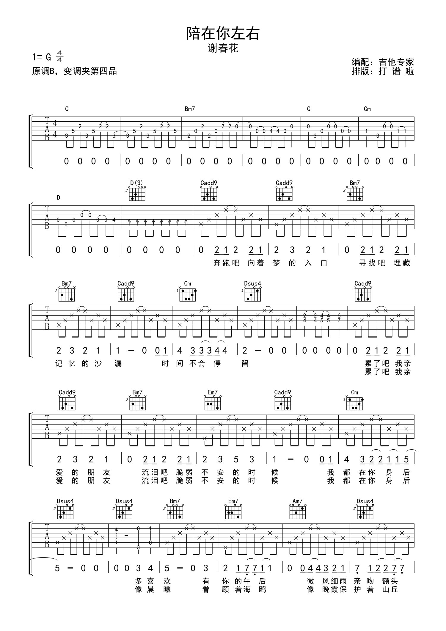 • 陪在你左右吉他谱 - 谢春花 - G调吉他弹唱谱第1张