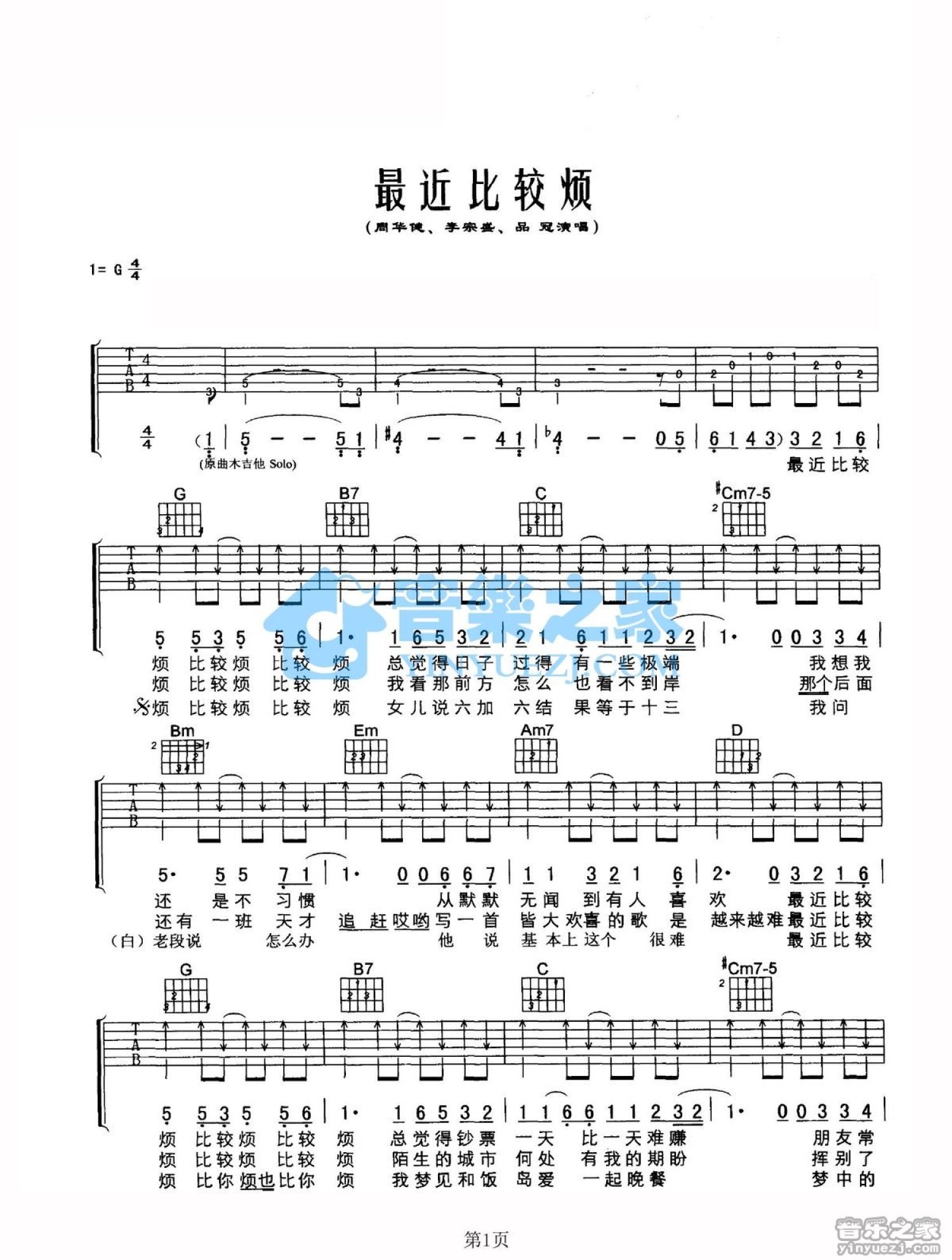 当前位置:琴谱网>吉他弹唱>最近比较烦