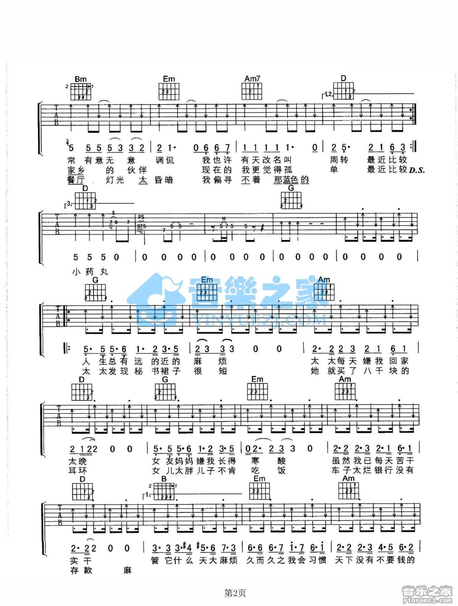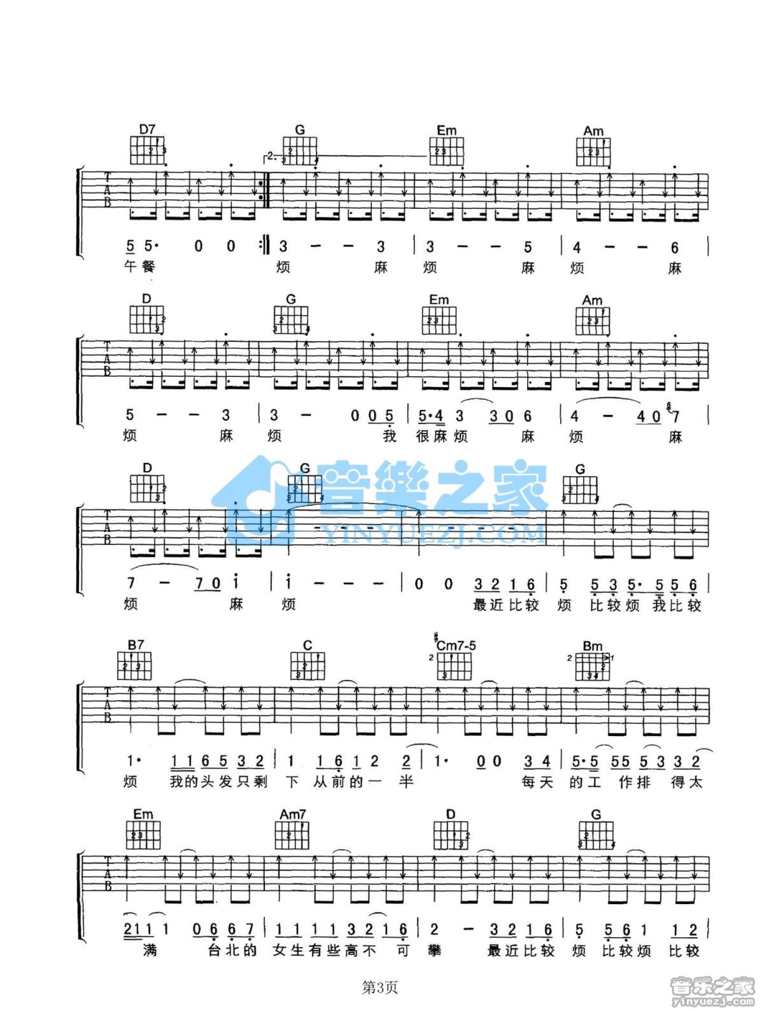 曲谱介绍: G调原版周华健《最近比较烦》吉他弹唱六线谱