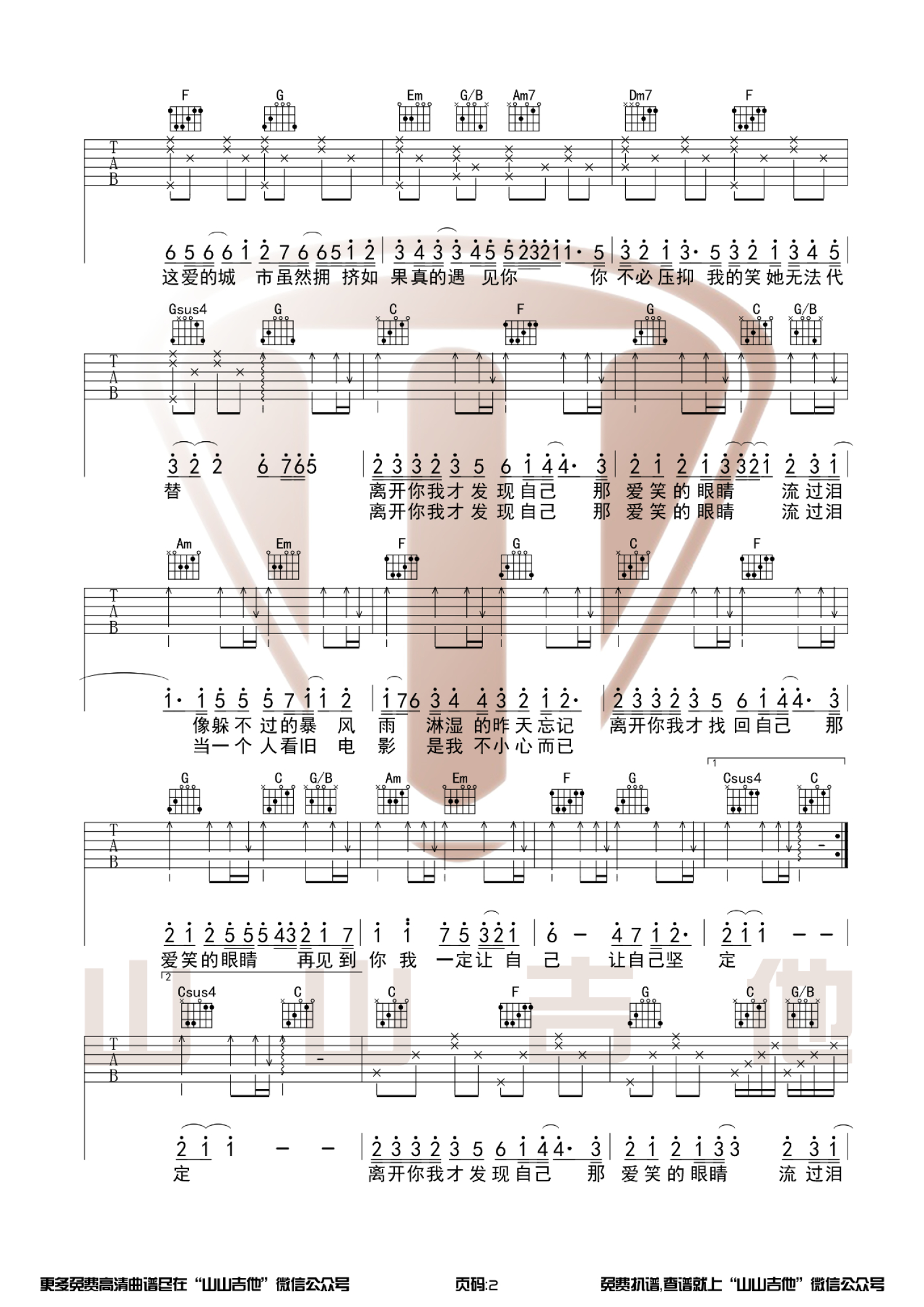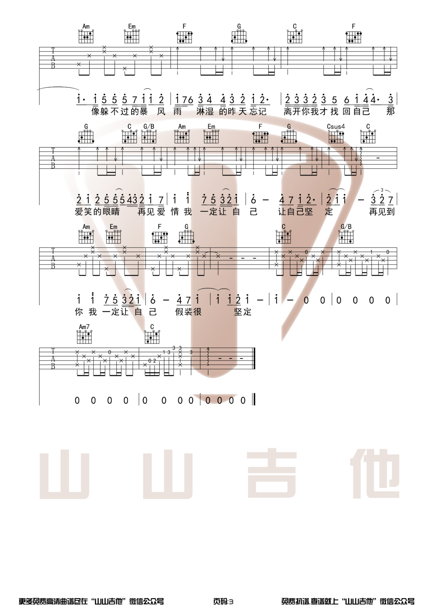 吉他弹唱C调来源:山山吉他4588 浏览2021-03-04 13:53发布图谱共3页