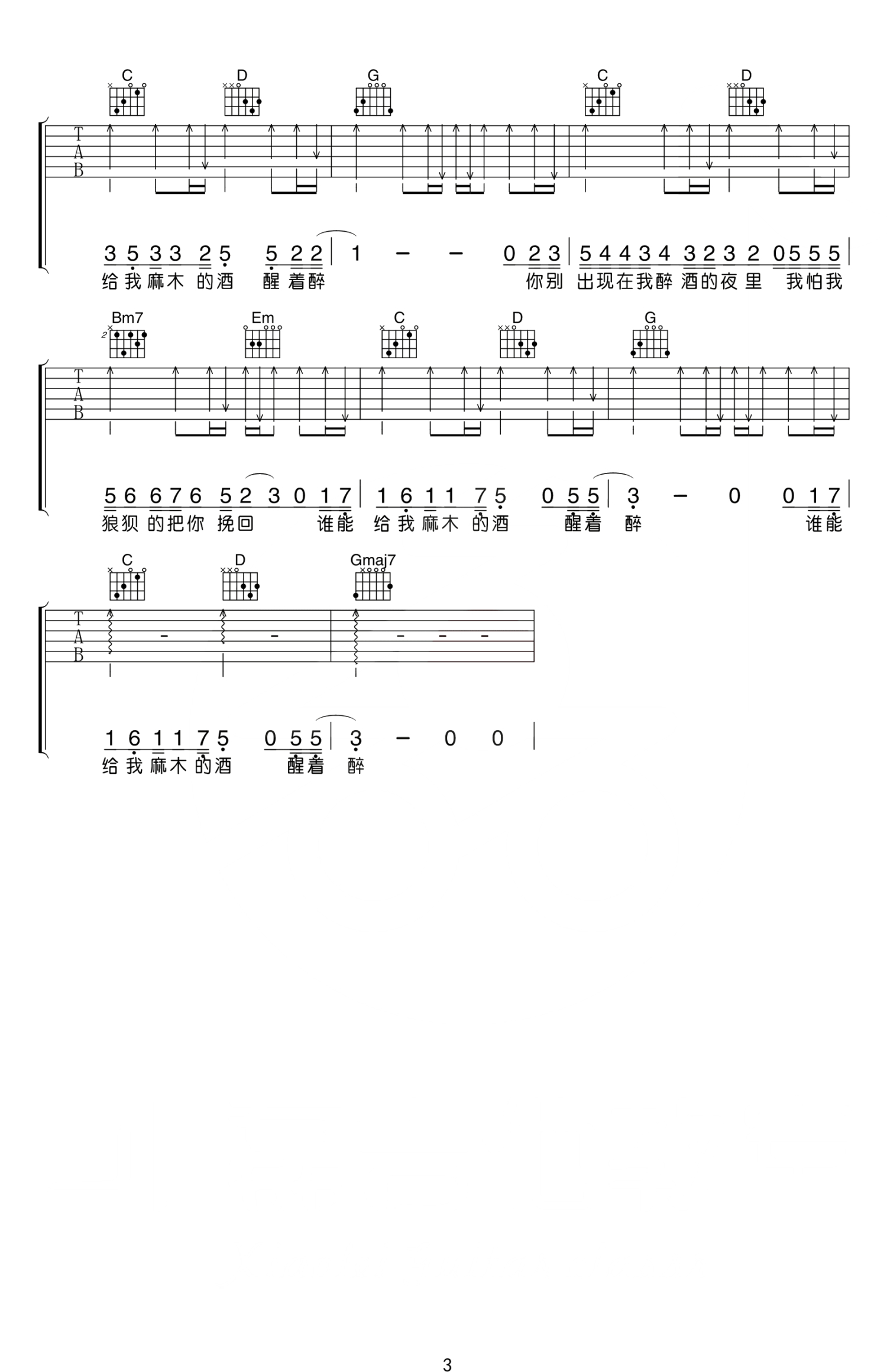 当前位置:琴谱网>吉他弹唱>醒着醉
