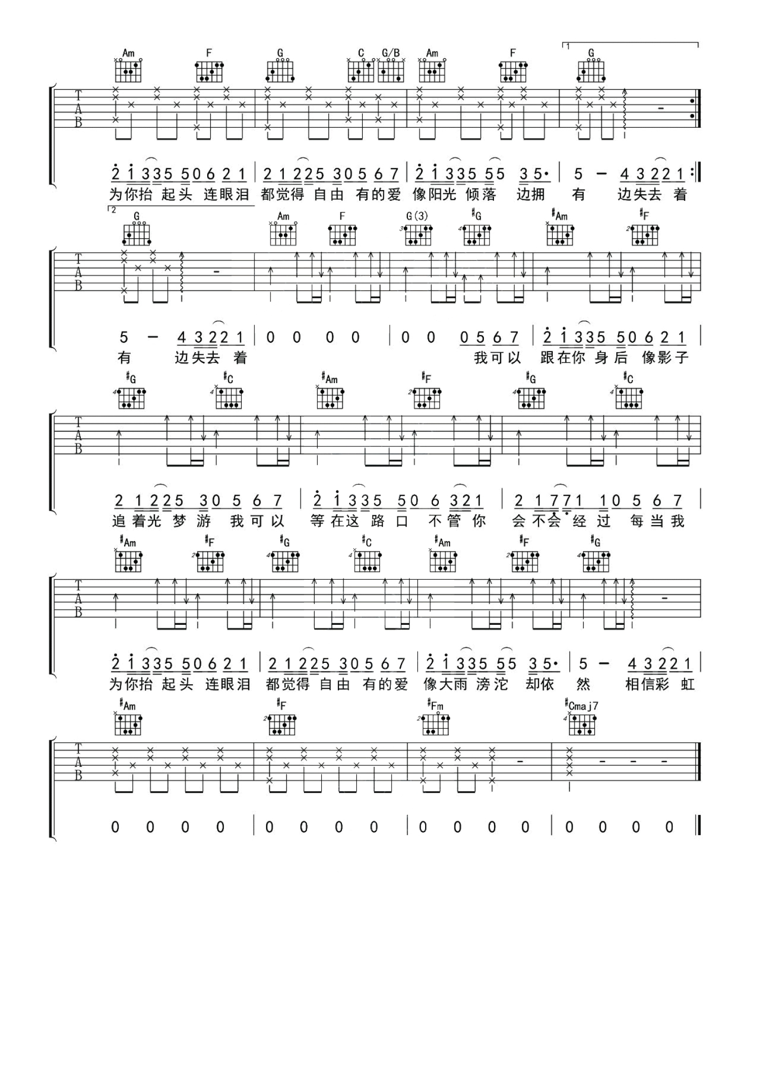 吉他弹唱C调来源:沈亮5839 浏览2021-03-05 21:50发布图谱共2页