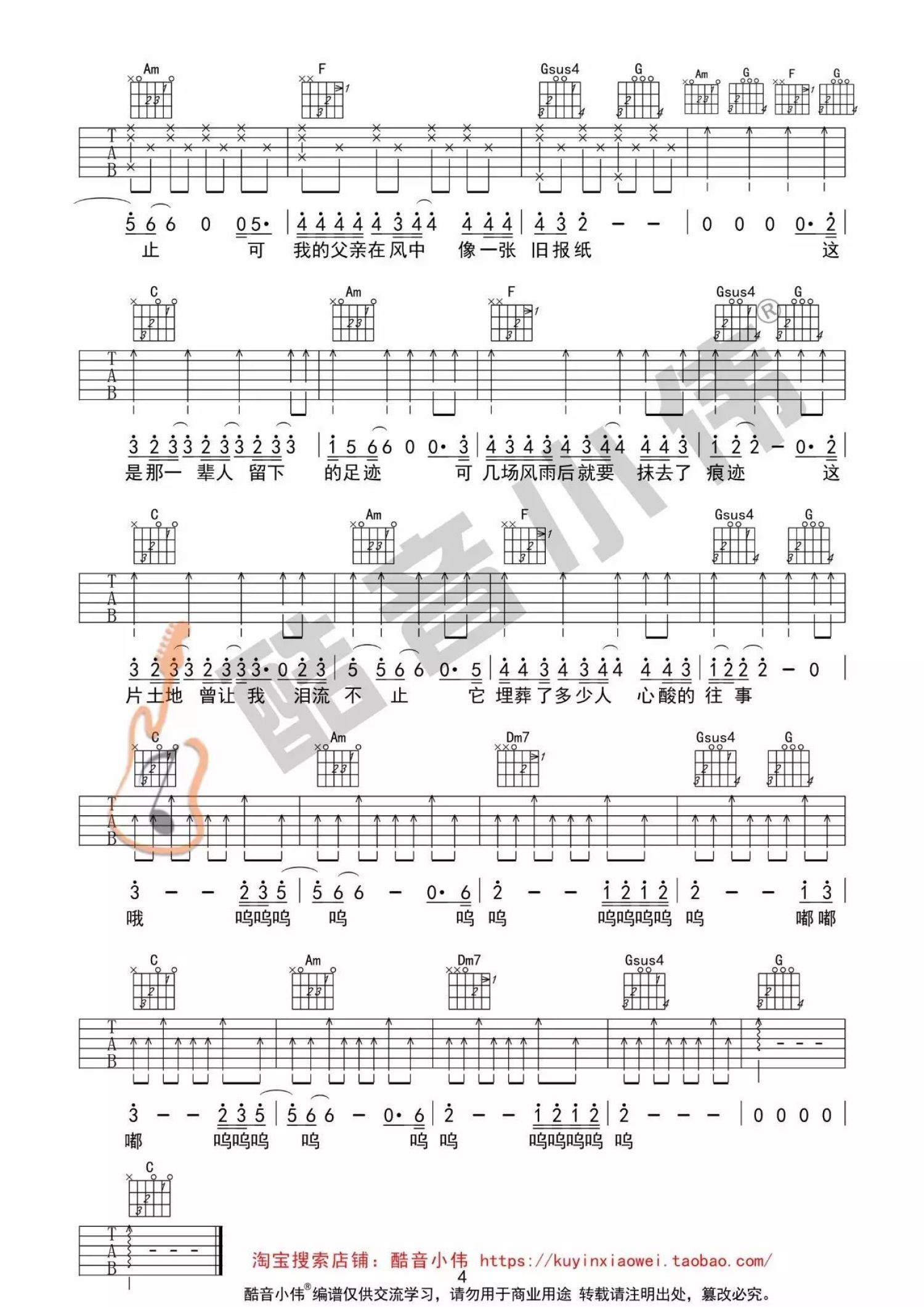 吉他弹唱C调来源:酷音小伟517 浏览2021-03-05 22:00发布图谱共4页