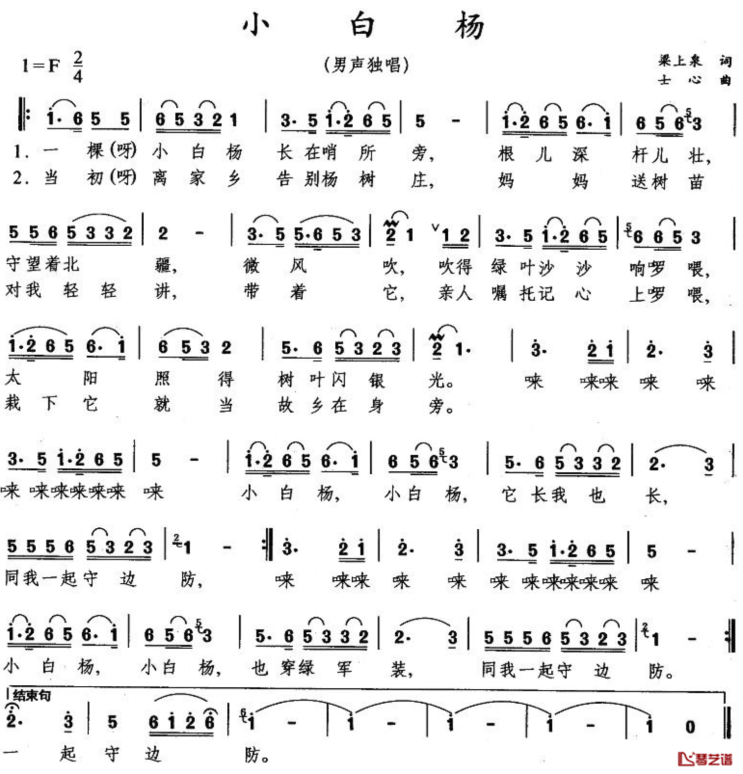 曲谱介绍: 阎维文《小白杨》歌词_简谱