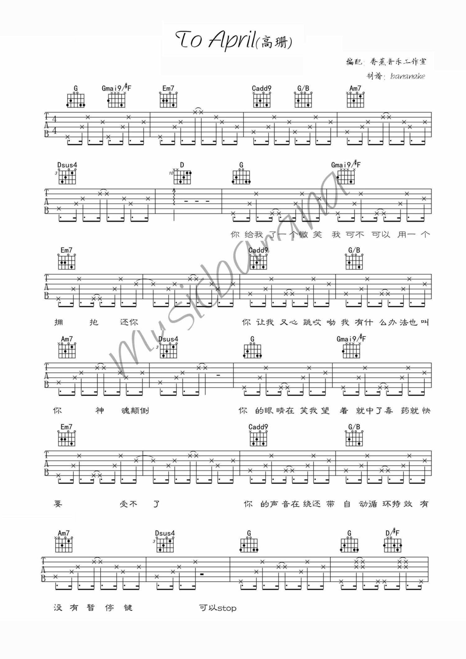 To April吉他谱 - 高姗 - G调吉他弹唱谱 - 附前奏