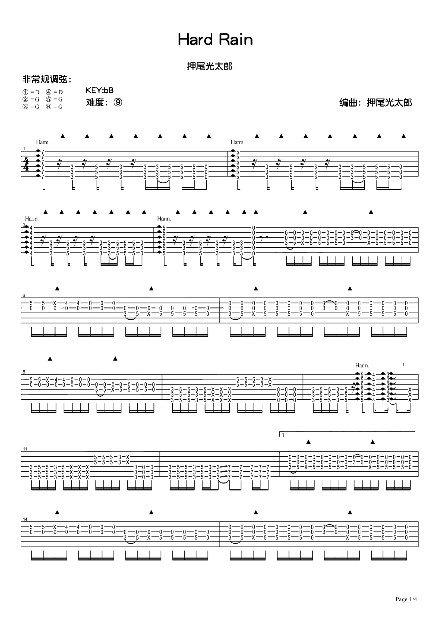 曲谱介绍: 押尾光太郎《hard rain》吉他谱_吉他独奏谱