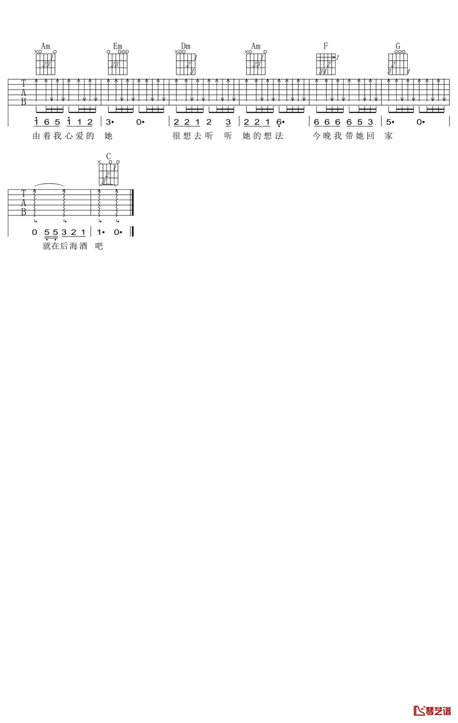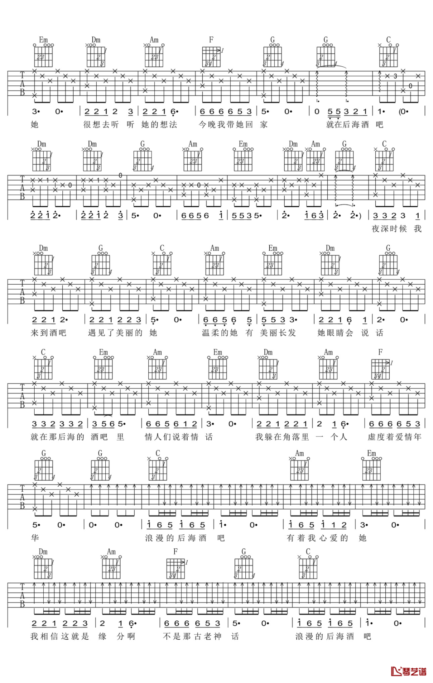 当前位置:琴谱网>吉他弹唱>后海酒吧