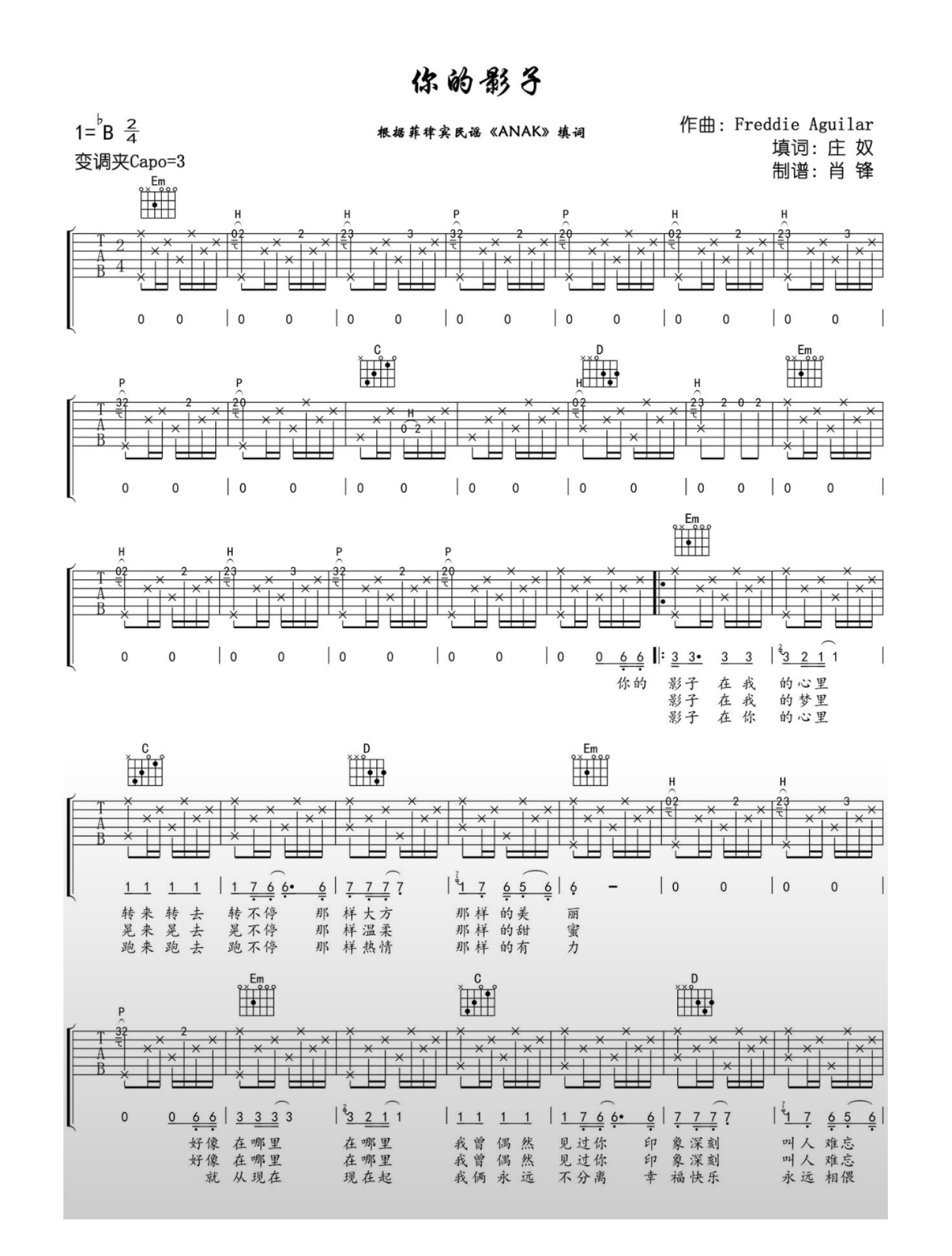 曲谱介绍: ANAK《你的影子》吉他谱_G调吉他弹唱谱