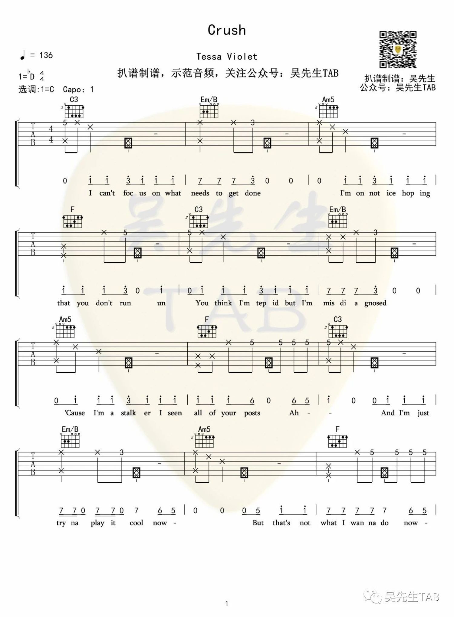 Crush吉他谱 - Tessa Violet - C调吉他弹唱谱