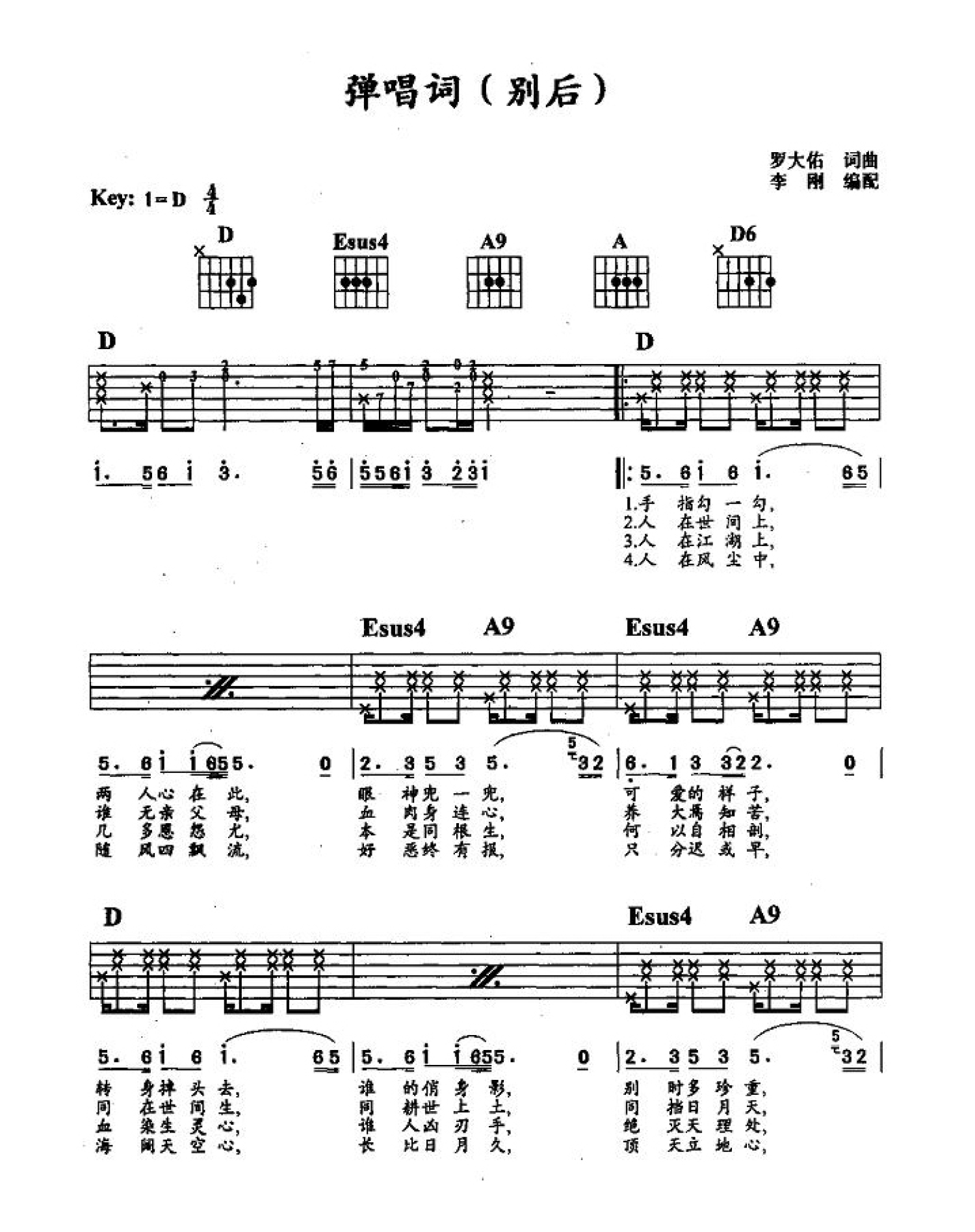 曲谱介绍: 罗大佑《弹唱词》吉他谱_D调吉他弹唱谱