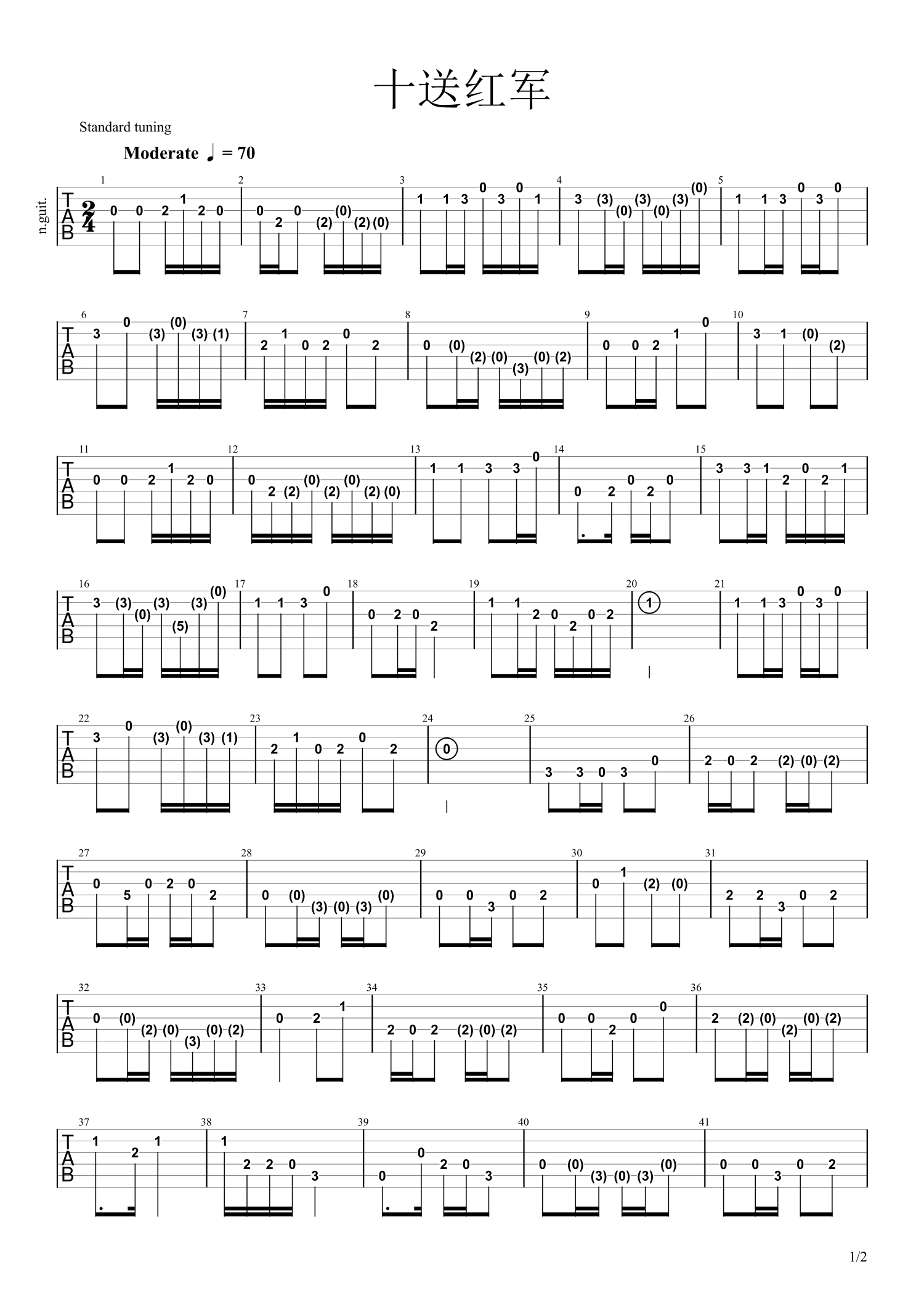 • 十送红军吉他谱 - 彭丽媛 - 吉他独奏谱第1张