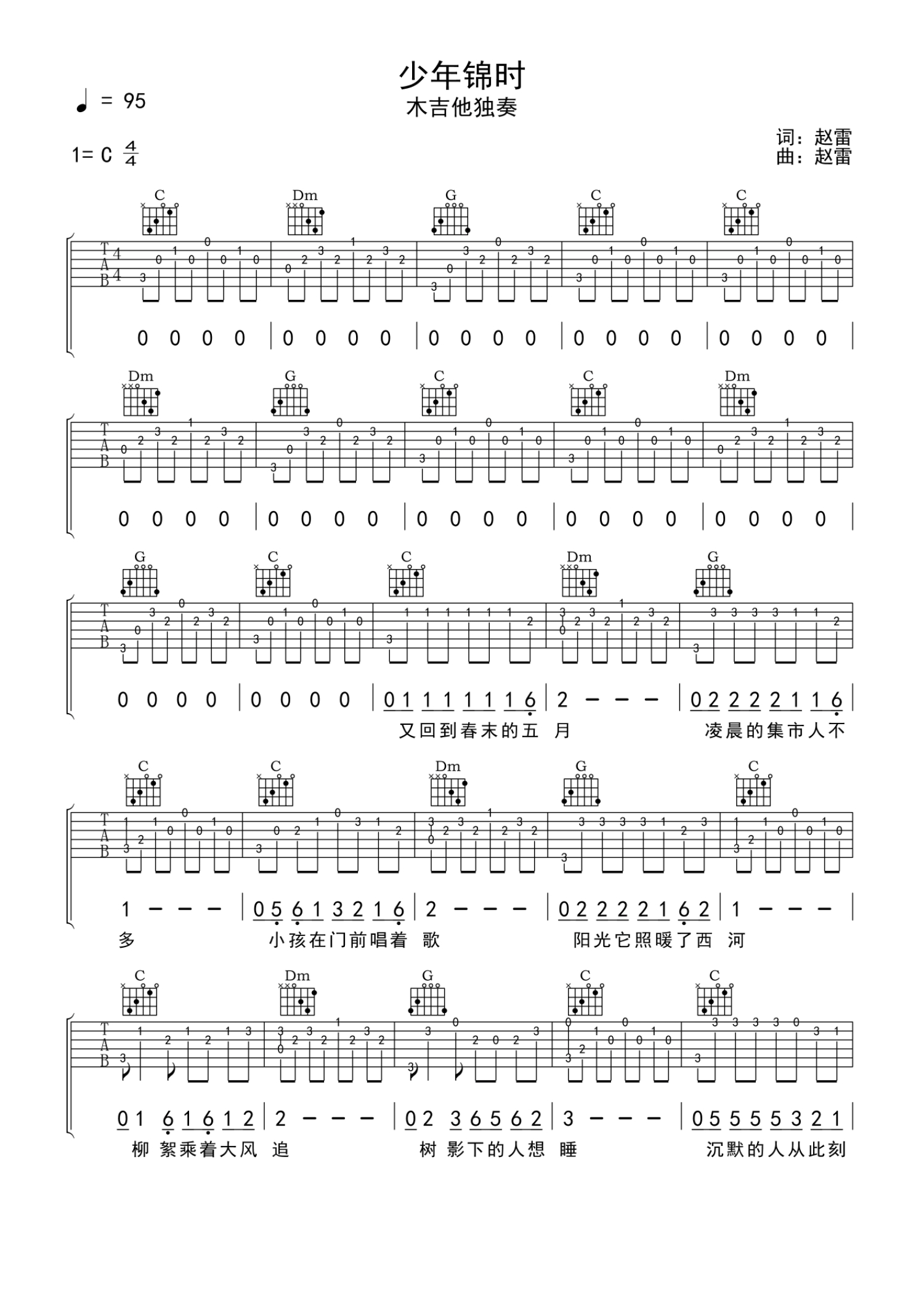 • 少年锦时吉他谱 - 赵雷 - C调吉他独奏谱第1张