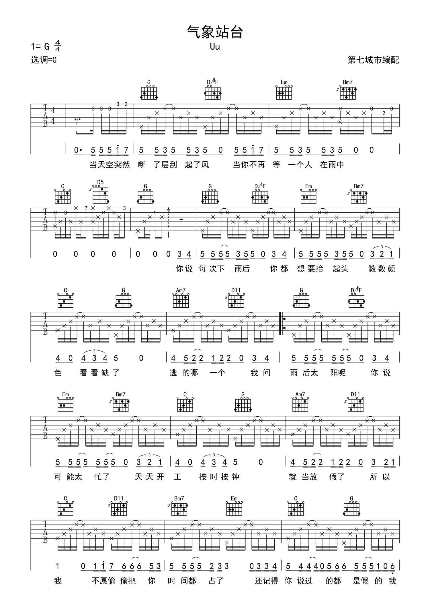 气象站台吉他谱 - Uu - G调吉他弹唱谱