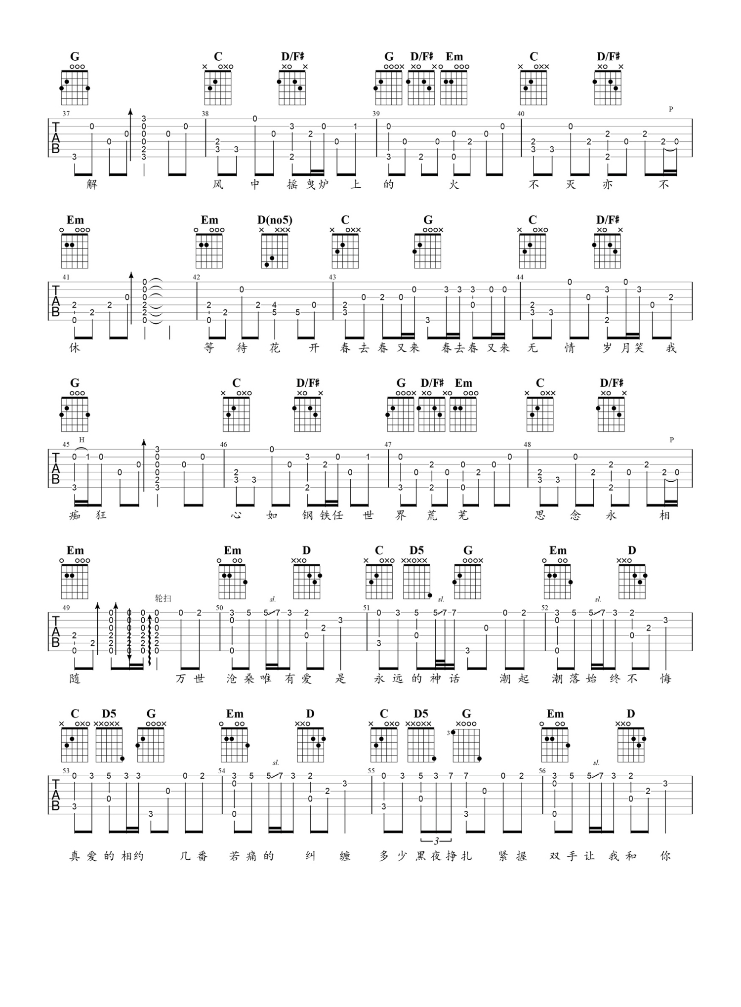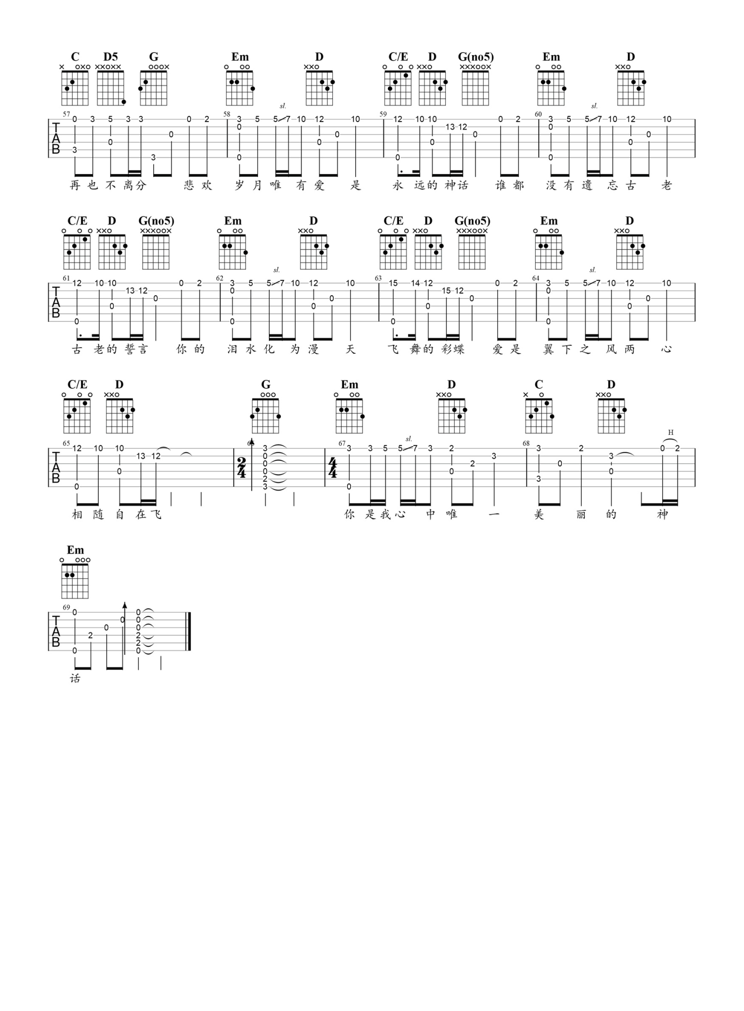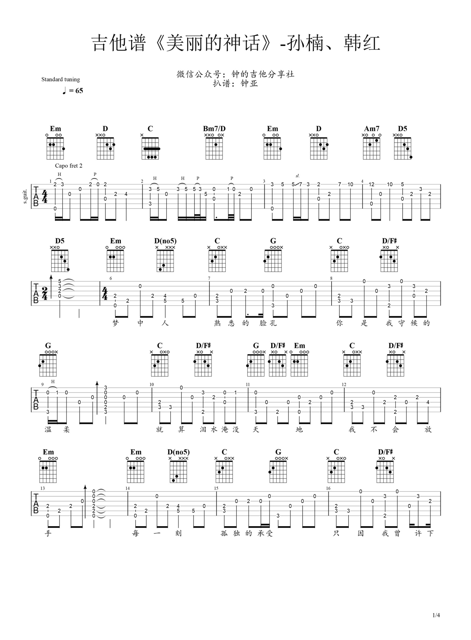 曲谱介绍: 孙楠/韩红《美丽的神话》吉他谱_吉他独奏谱