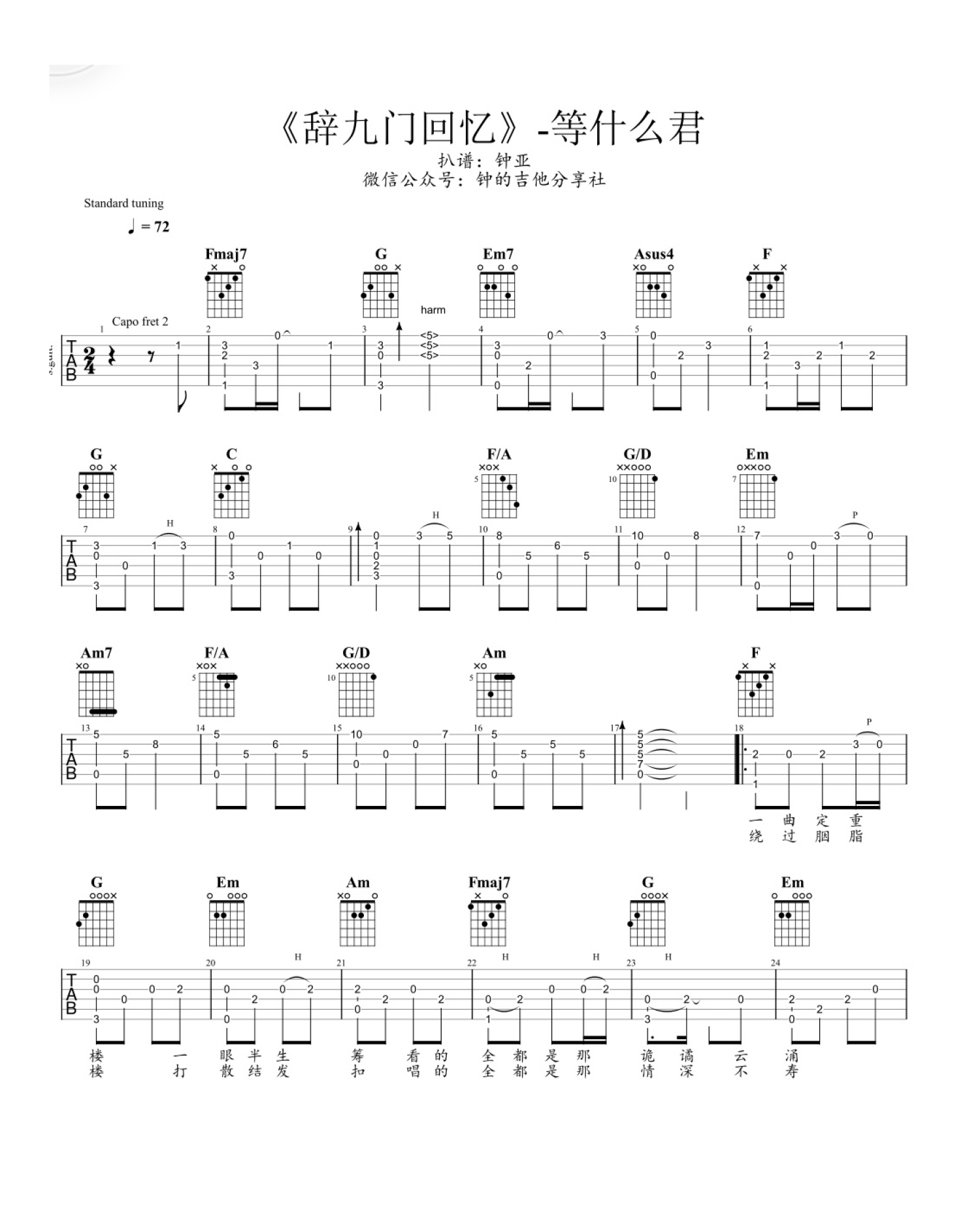 吉他弹唱C调来源:钟的吉他社451 浏览2021-03-14 11:49发布图谱共3页