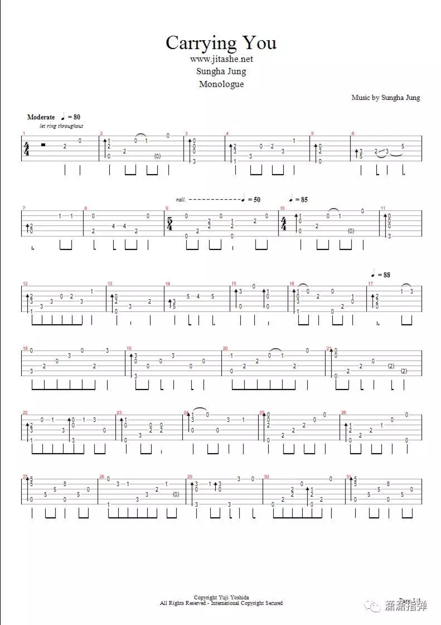 曲谱介绍: 郑成河《carrying you》吉他谱_吉他独奏谱